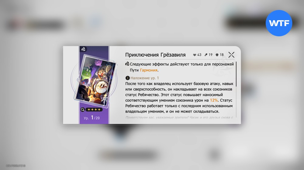 - 20 птиц — световой конус пути Гармония с 4 звёздами редкости «Приключения Грёзавиля».
