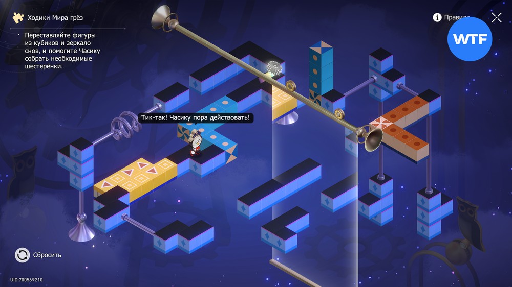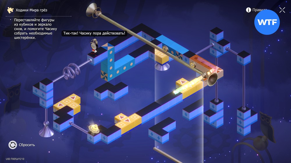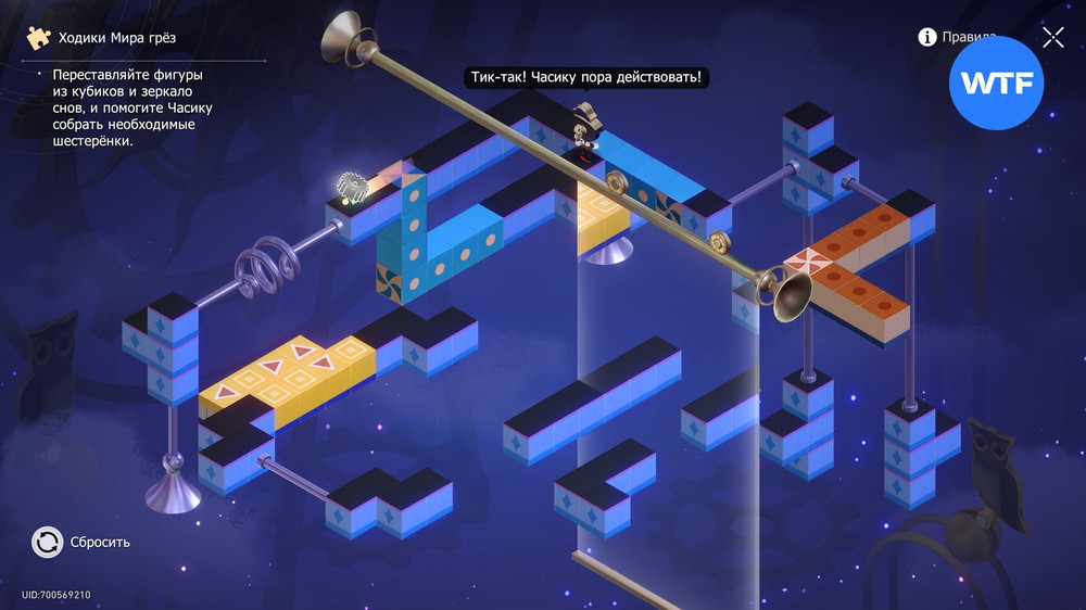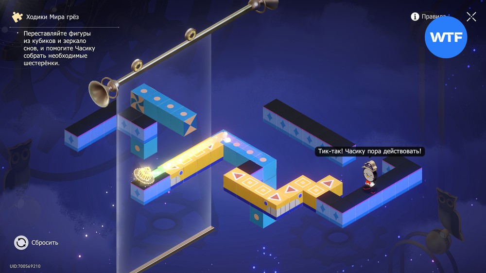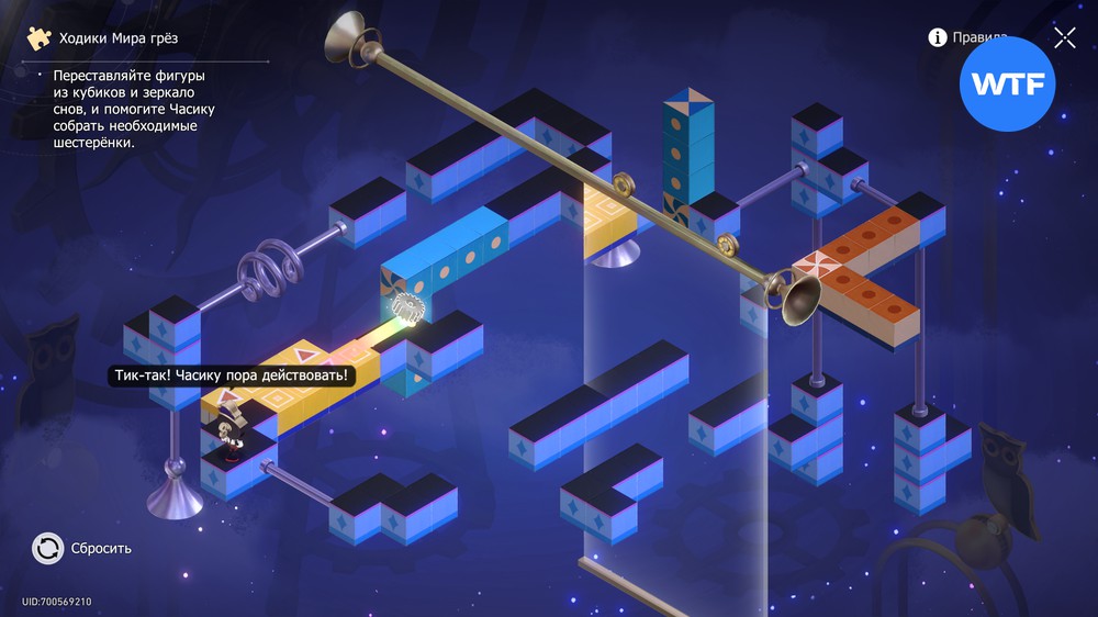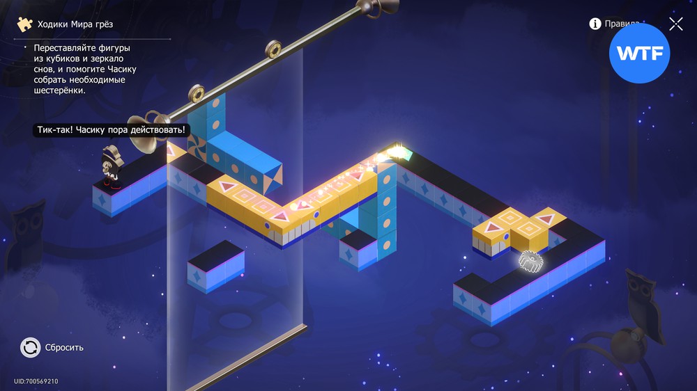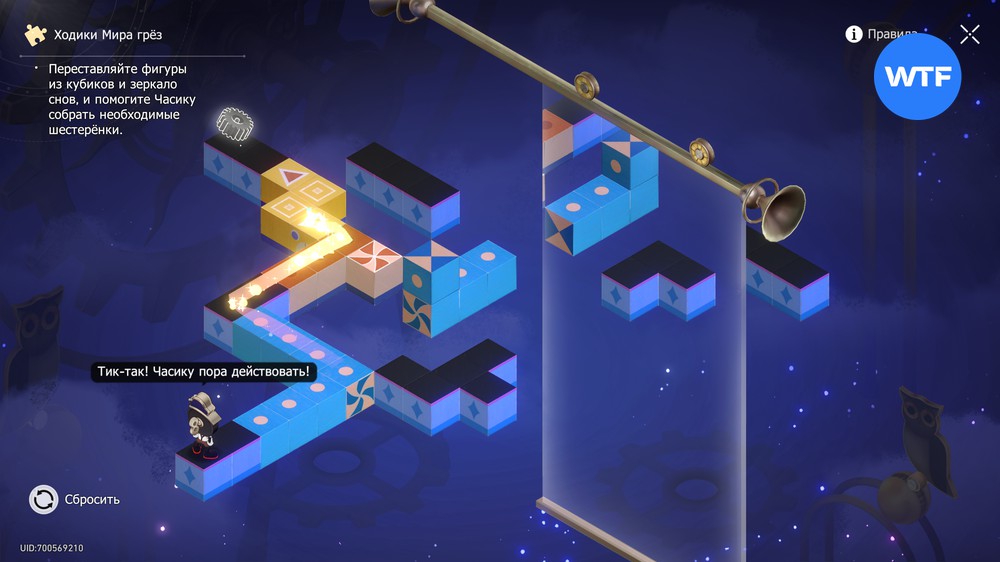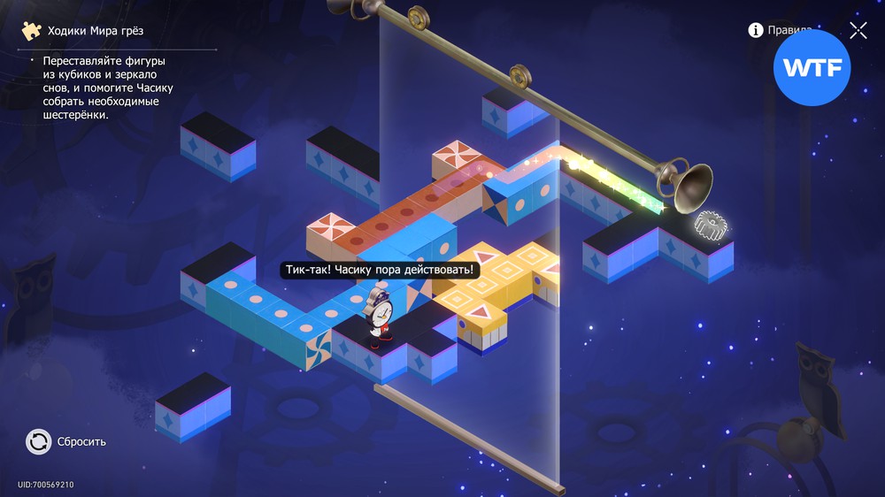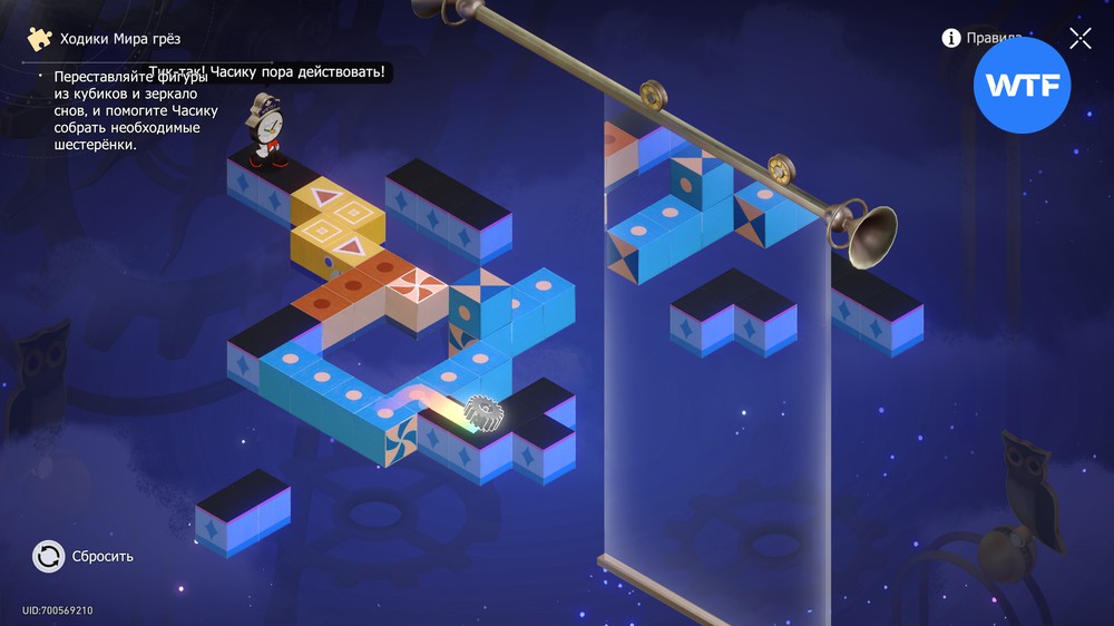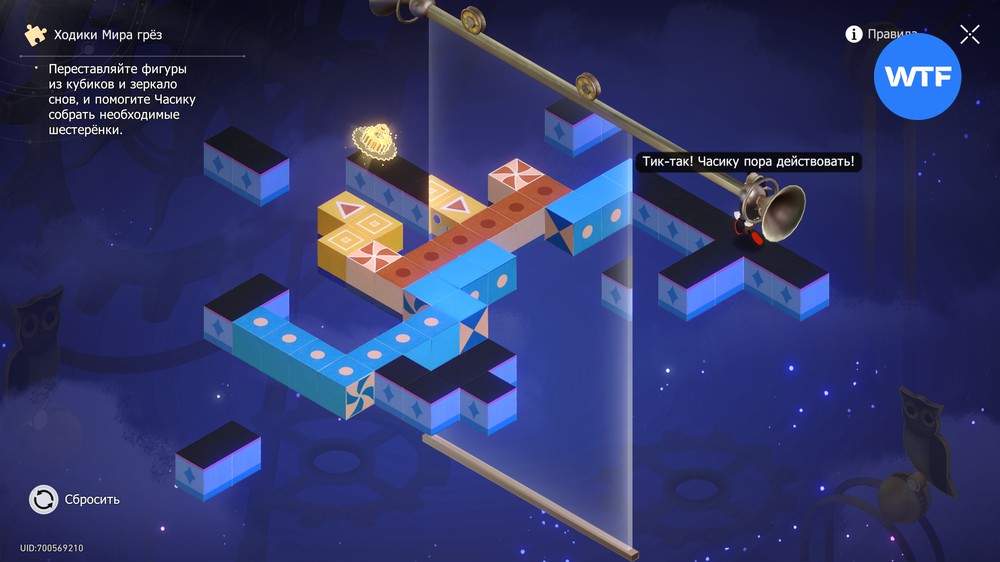 Всего в Рифе потока сновидений можно найти три загадки Ходиков Мира грёз. Чтобы решить головоломку, вам нужно передвинуть цветные блоки и зеркало так, как показано на скриншотах ниже.