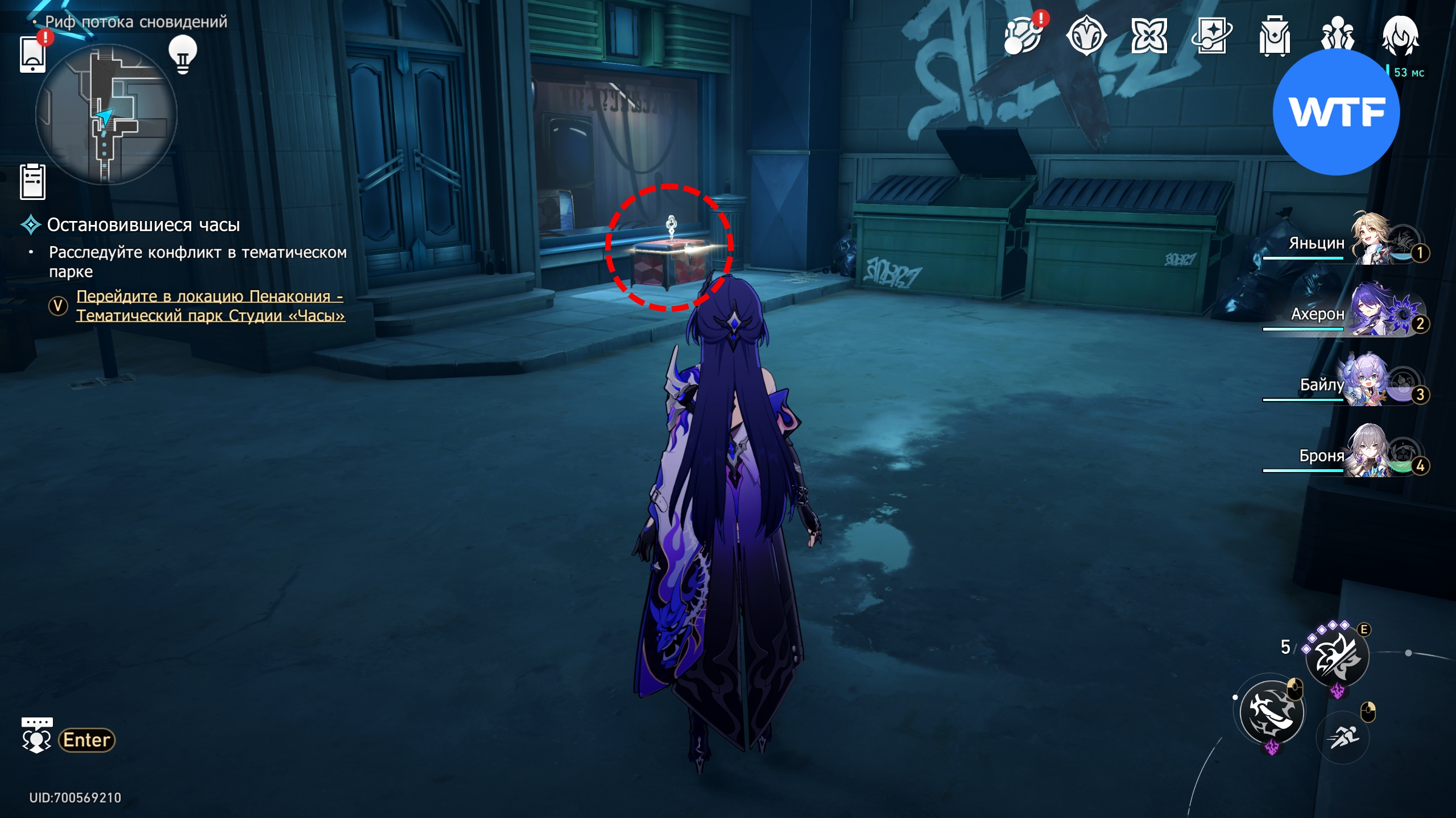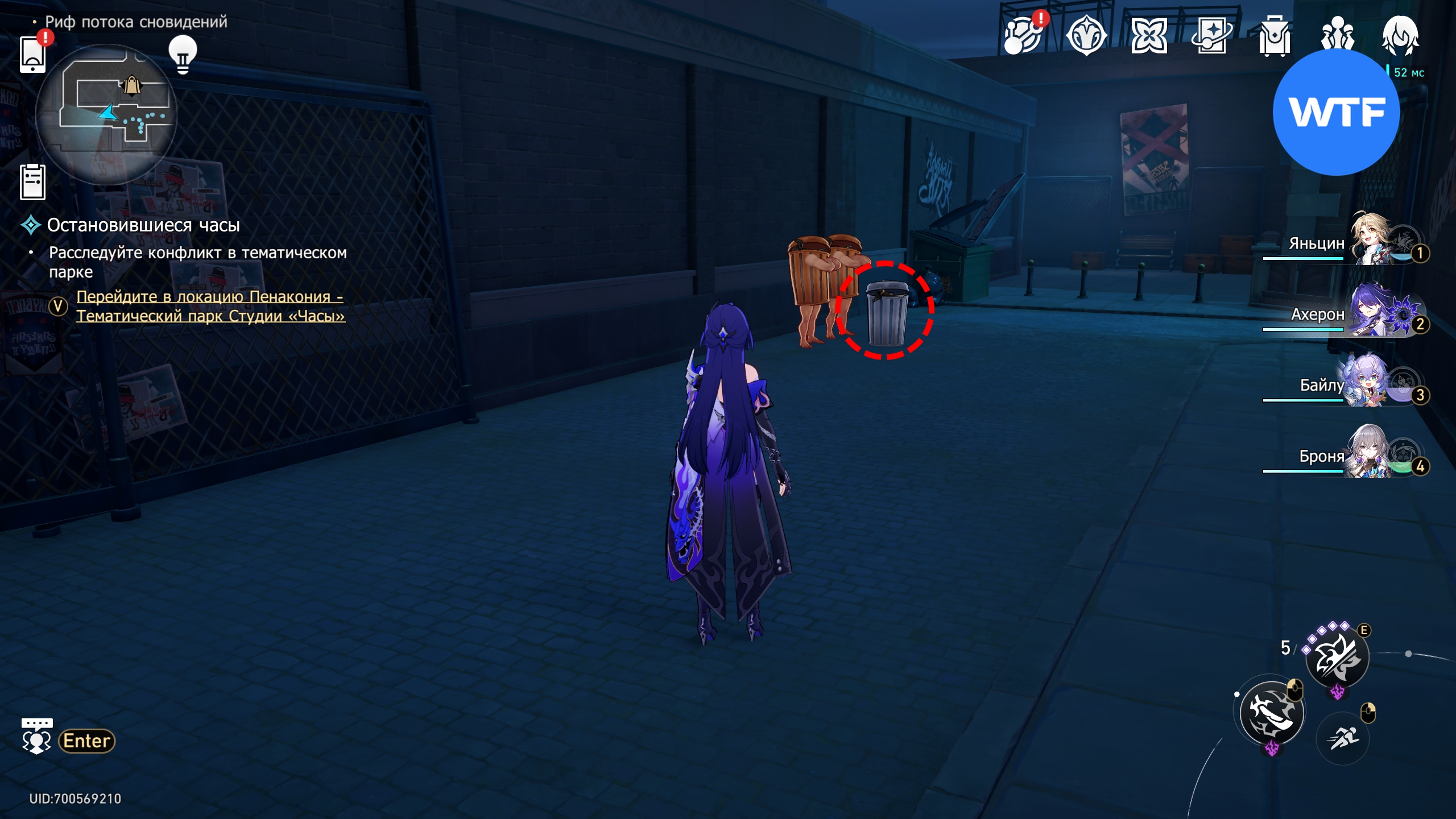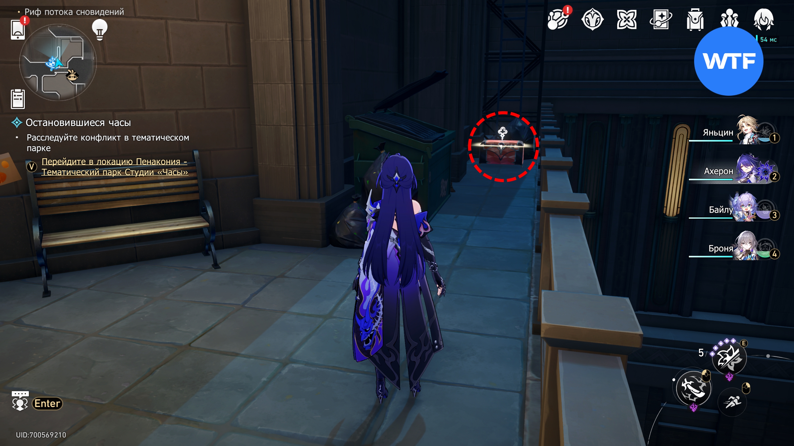 От пространственного якоря «Узкий переулок» бегите на юг, а затем осмотрите лавочки с парящими фиолетовыми пузырями в западном углу перрона. После этого вы сможете пообщаться с Загадочным мусорным баком.