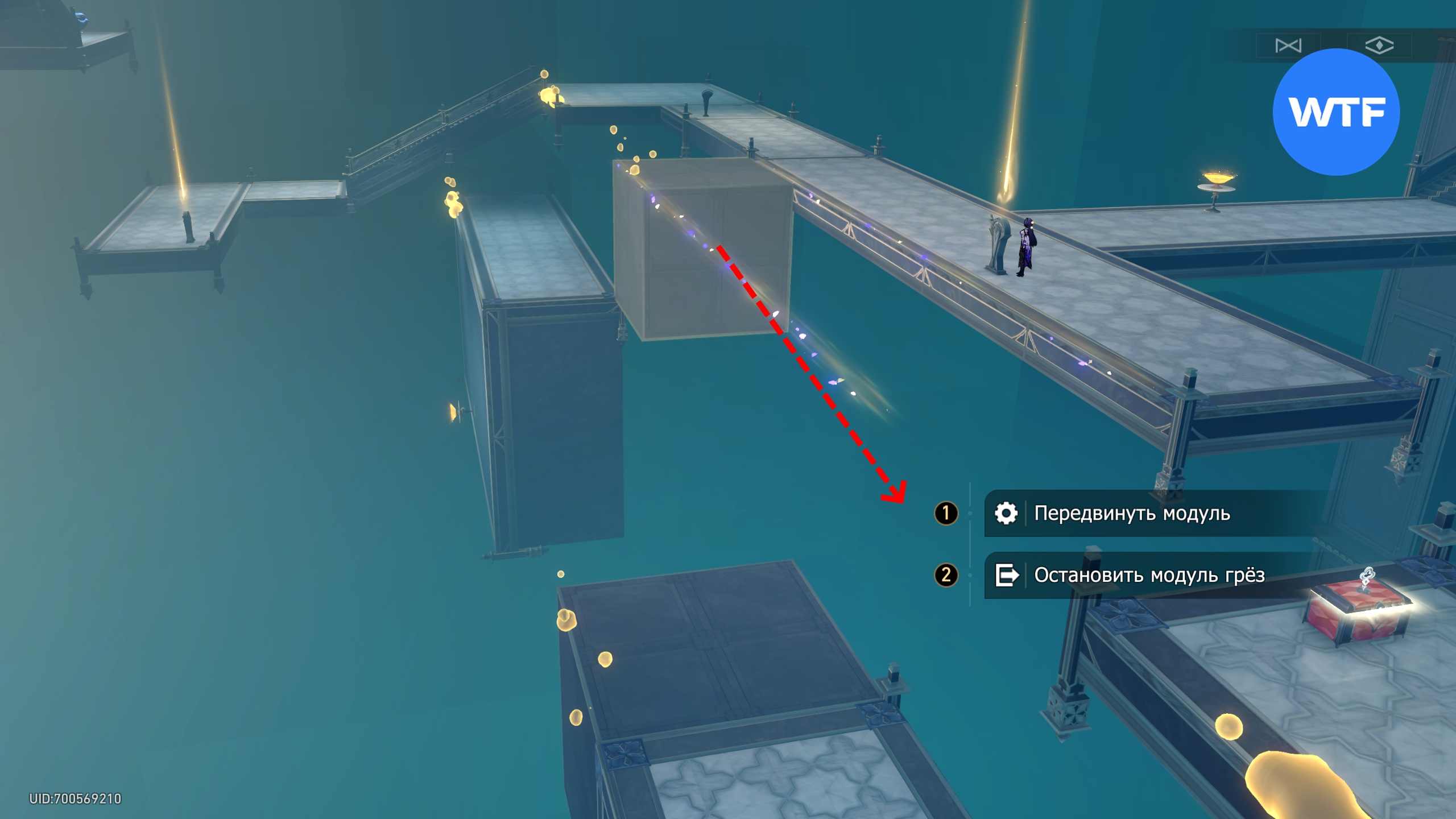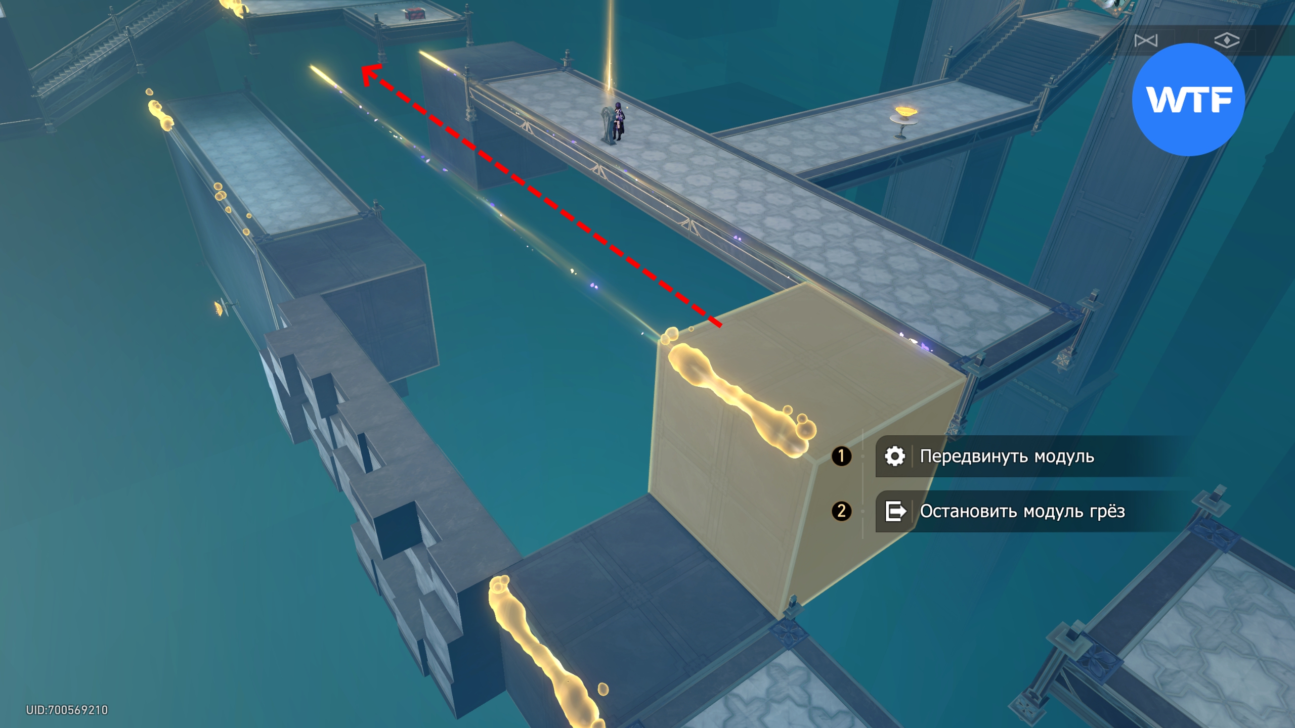 Вернитесь обратно к Модулю грез и передвиньте платформу на то место, где она стояла изначально. Теперь вам хватит зарядов, чтобы построить два пузыремоста и подняться наверх по стене справа, что в итоге приведет вас к обычному сундуку.