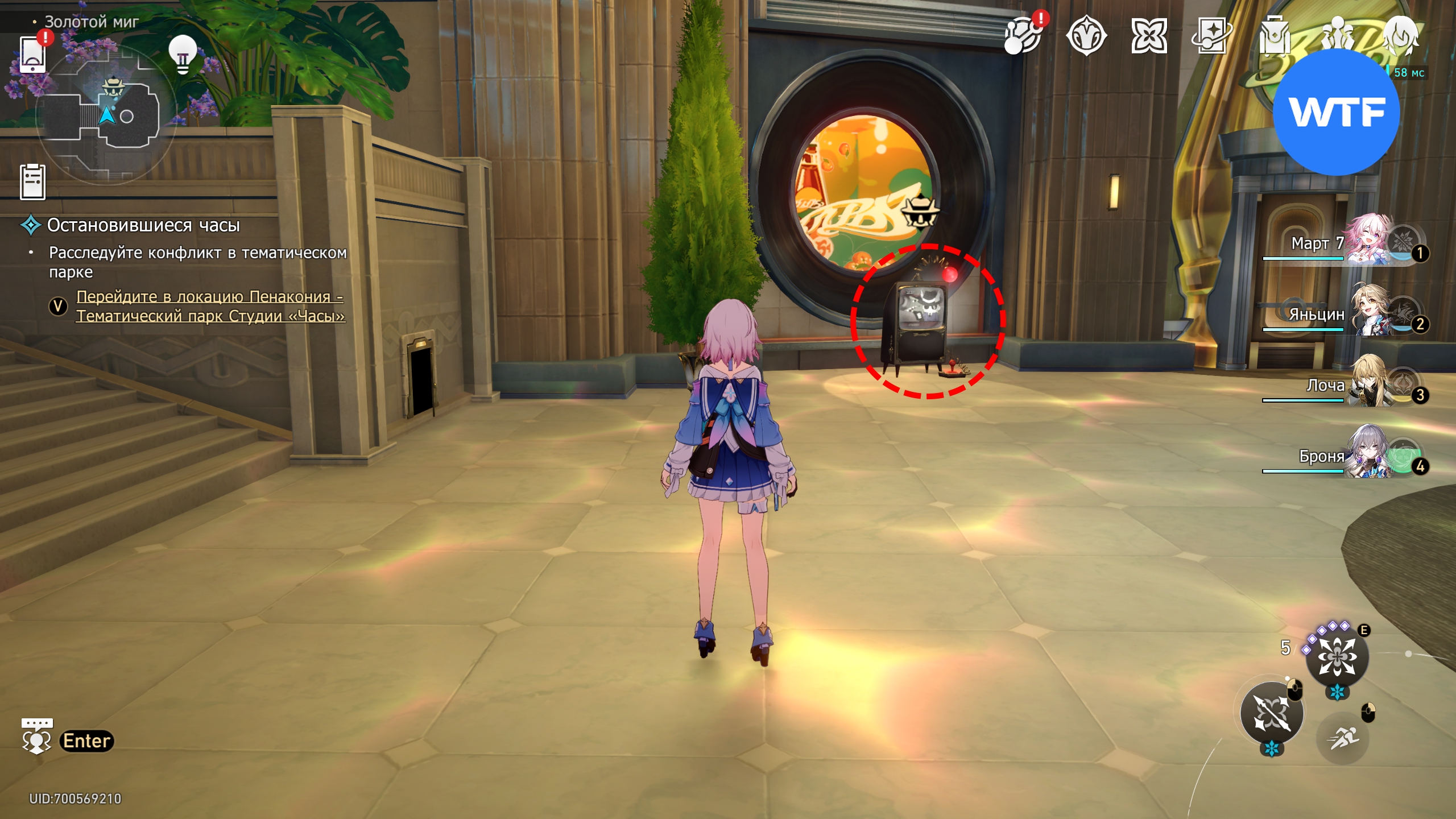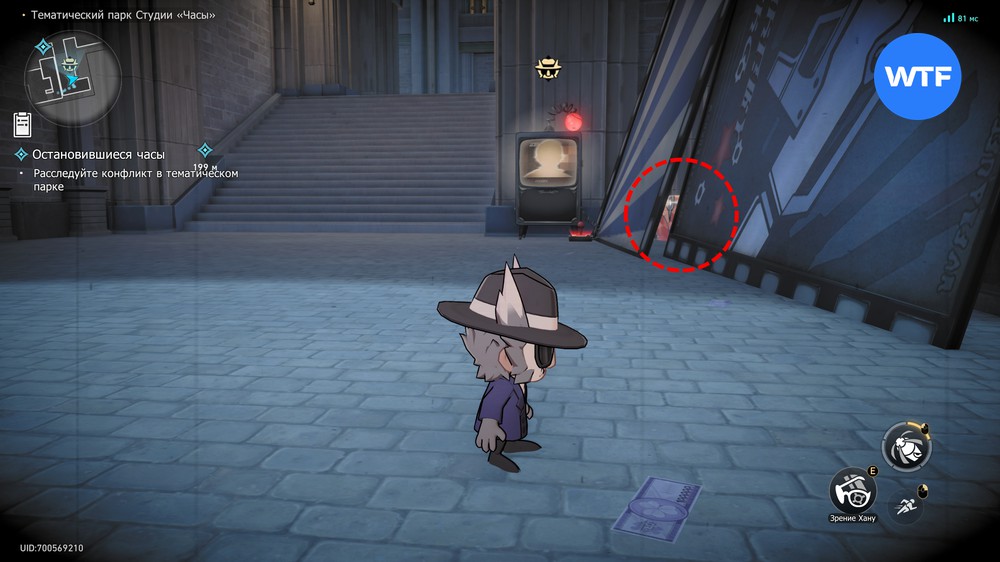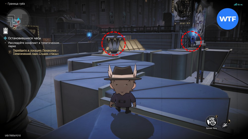Позже вы сможете вернуться в эту локацию снова. Если вы еще не исследовали локацию «Тематический парк Студии Часы», то воспользуйтесь точкой быстрого перемещения «Вход в тематический парк».