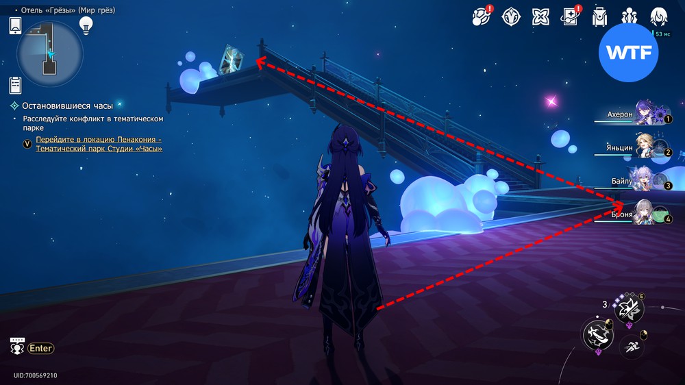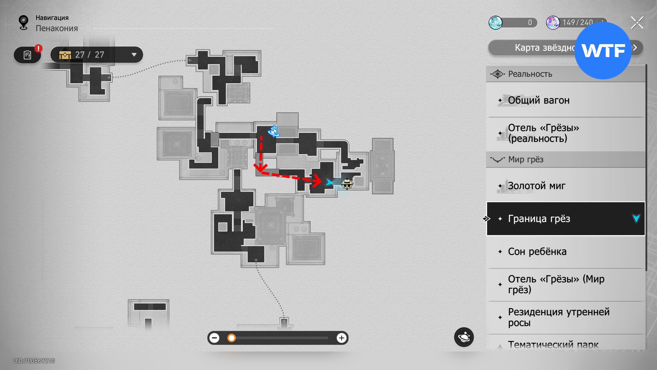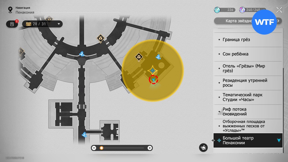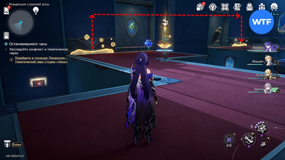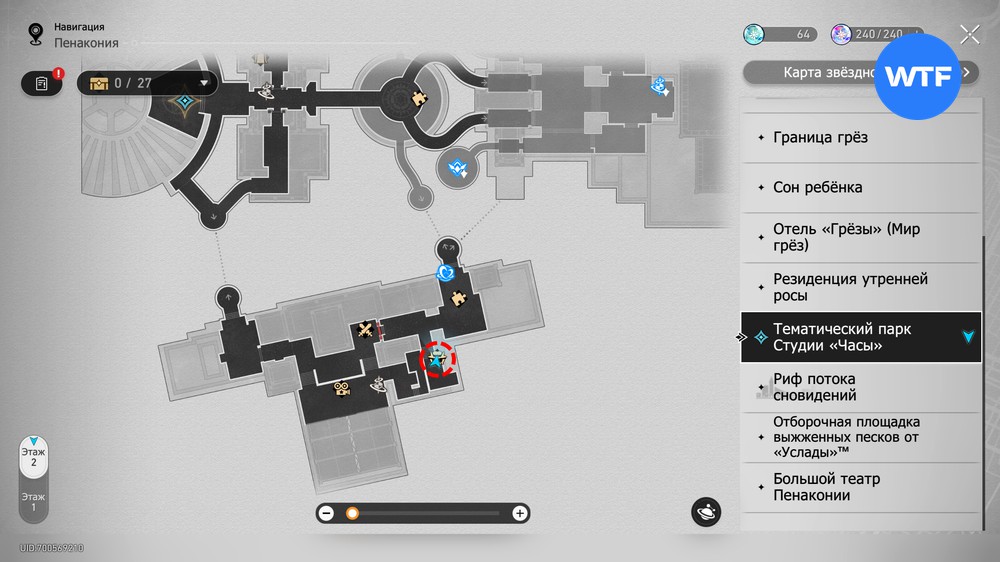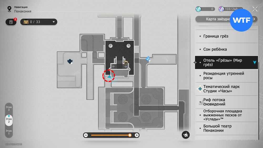 Перейдите в локацию «Отель Грёзы (Мир грёз)» и воспользуйтесь точкой быстрого перемещения «Платиновые номера» на третьем этаже. От неё бегите на юг, чтобы добраться до Загадочной картины, которая доставит вас в скрытую область.