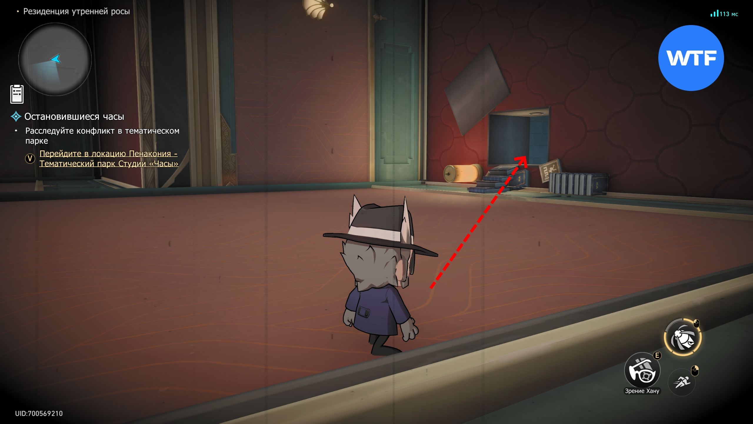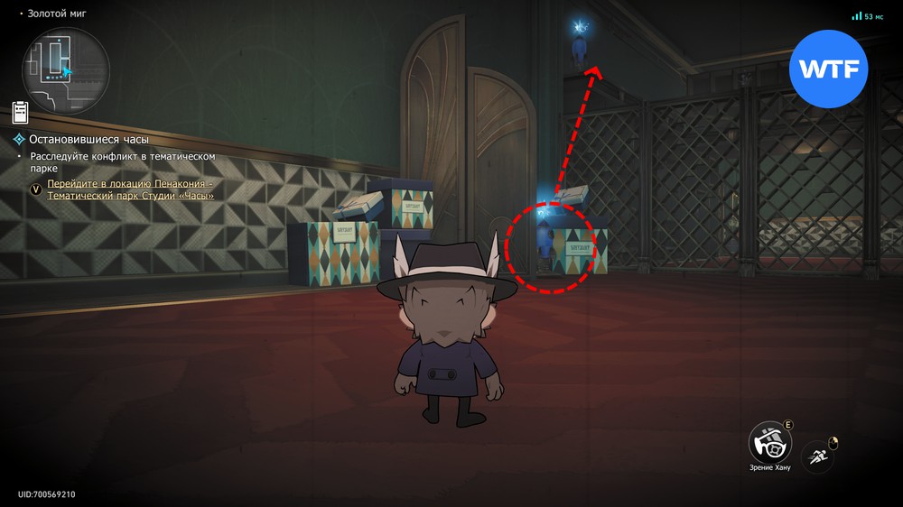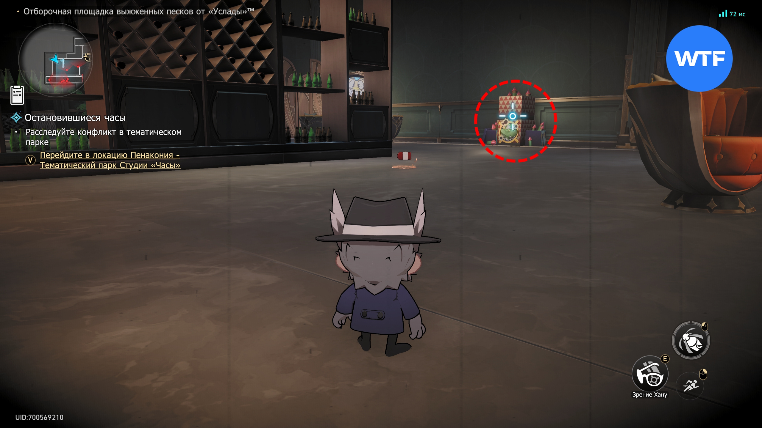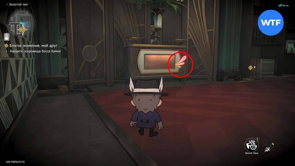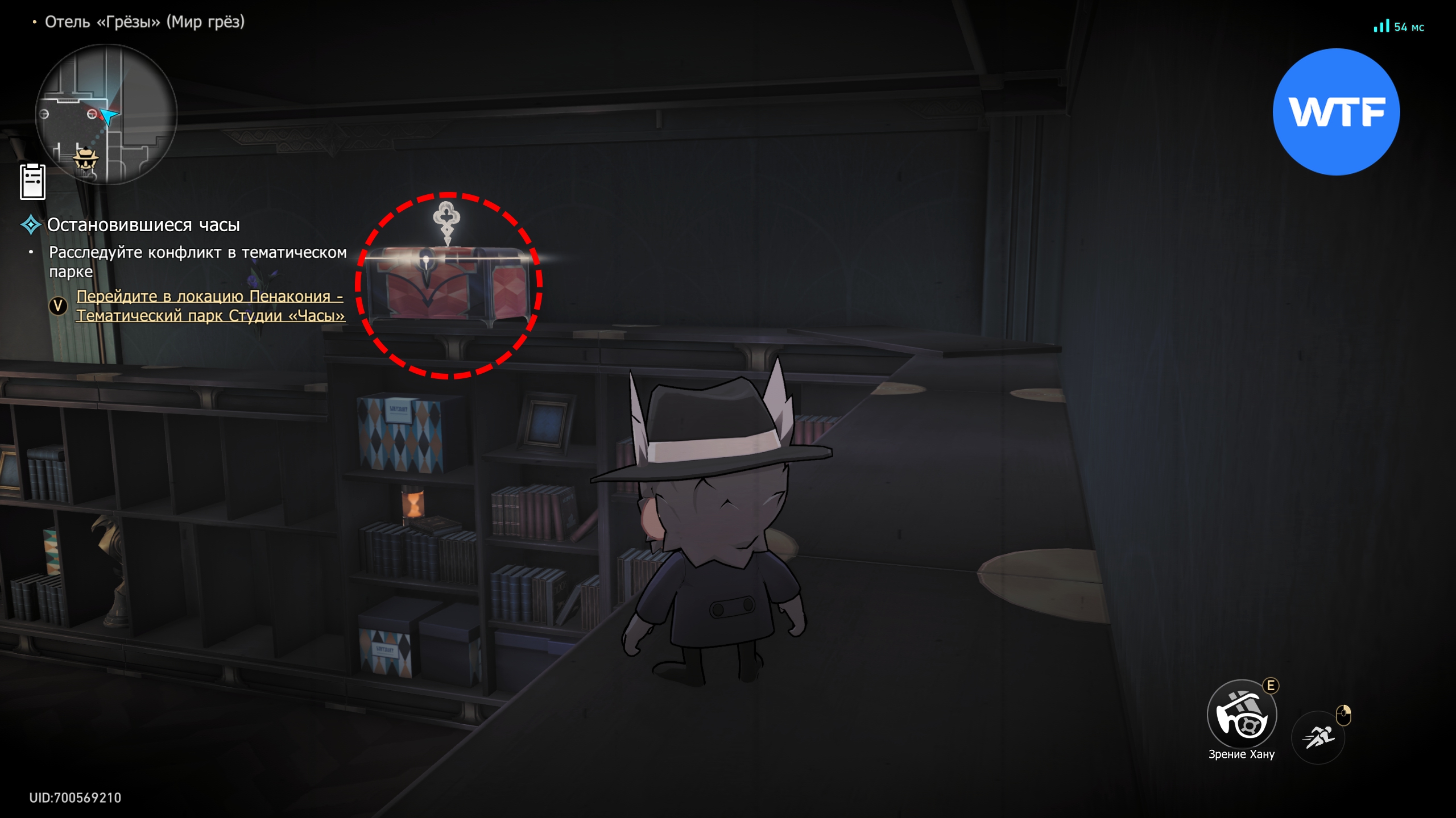 Чтобы добраться до последней главы «Приключений Хану», от предыдущего сундука сядьте в лифт и спуститесь на -1 этаж, в бар. Воспользуйтесь телевизором, чтобы снова превратиться в Хану.