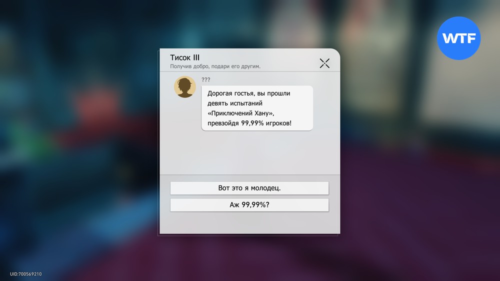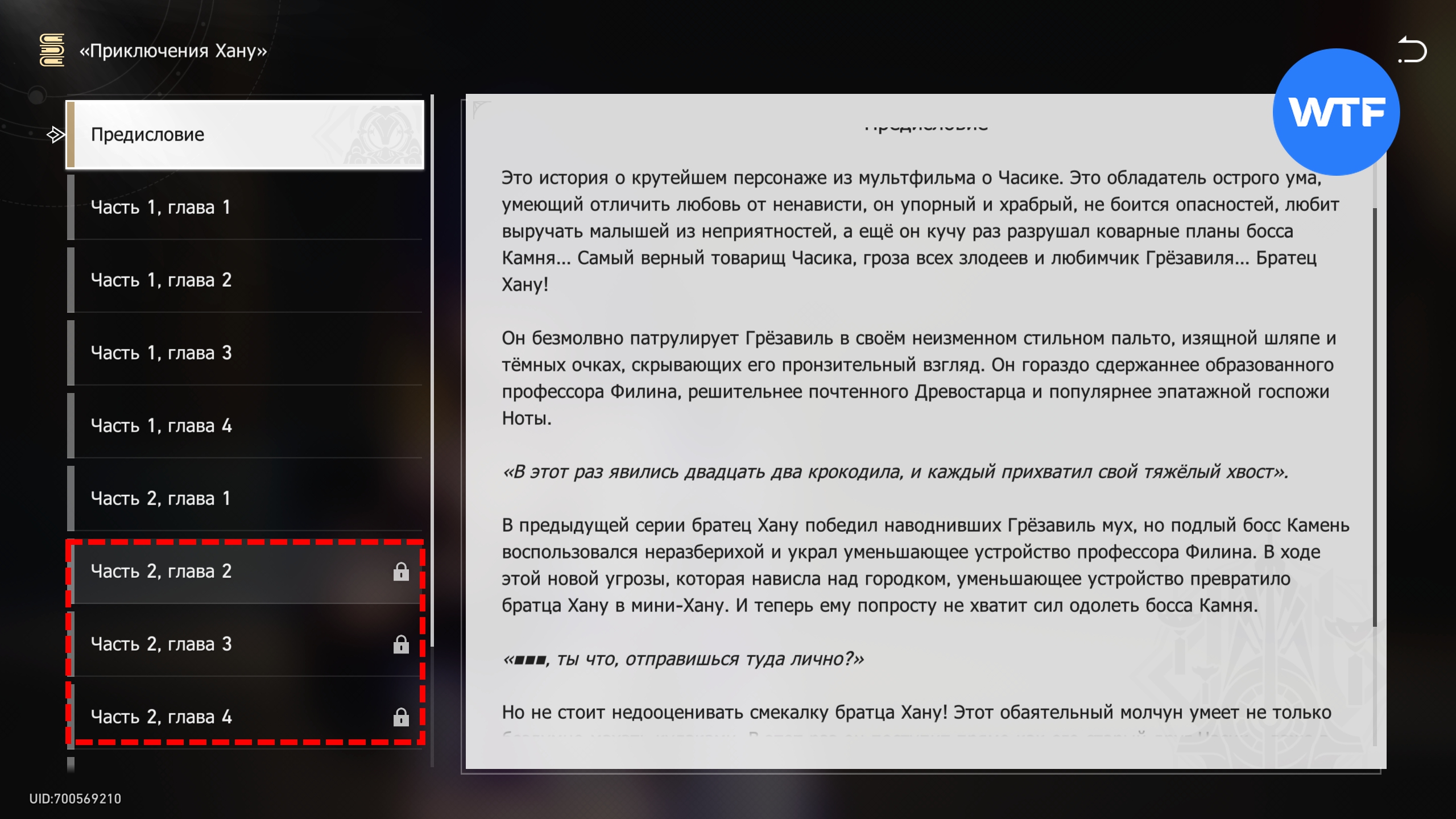 Собрав все главы первой части «Приключений Хану», вы получите на свой смартфон сообщение от адресата ???. Прочтите его, чтобы получить аватар «Братец Хану» в награду. Также будет разблокировано достижение «Ходящая с волками».