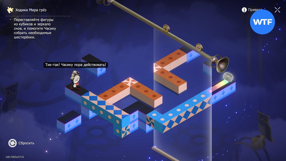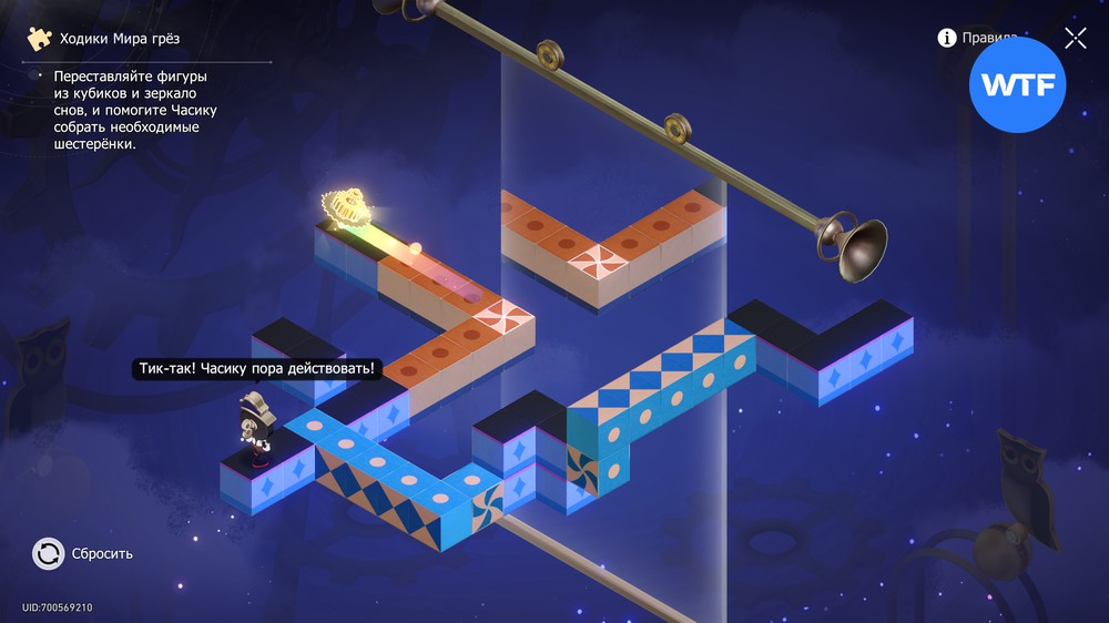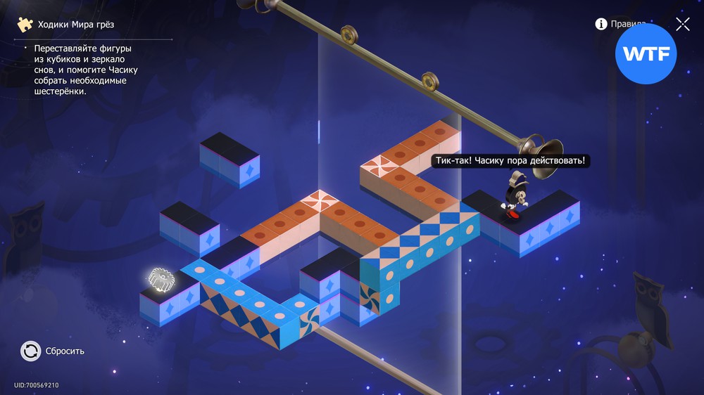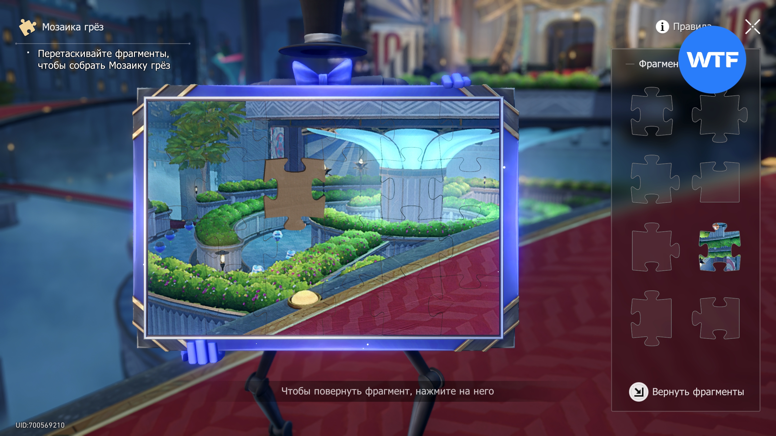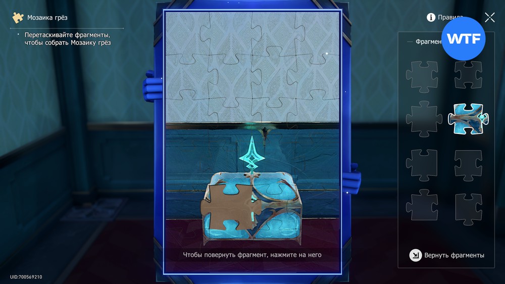 Теперь вернитесь ко второму телевизору, примите свой истинный облик и поднимитесь по лестнице. Справа от вас вы увидите Мозаику грёз, собрав фрагменты которой и решив пазл, можно получить роскошный сундук, внутри которого лежит часть 2, глава 1 «Приключений Хану».