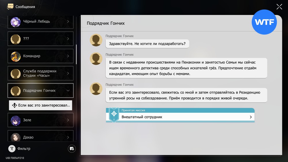 Чтобы получить квест «Внештатный сотрудник», необходимо полностью завершить сюжетную квестовую цепочку «Кошка среди голубей», добавленную в Хонкай Стар Рейл в патче 2.1.
