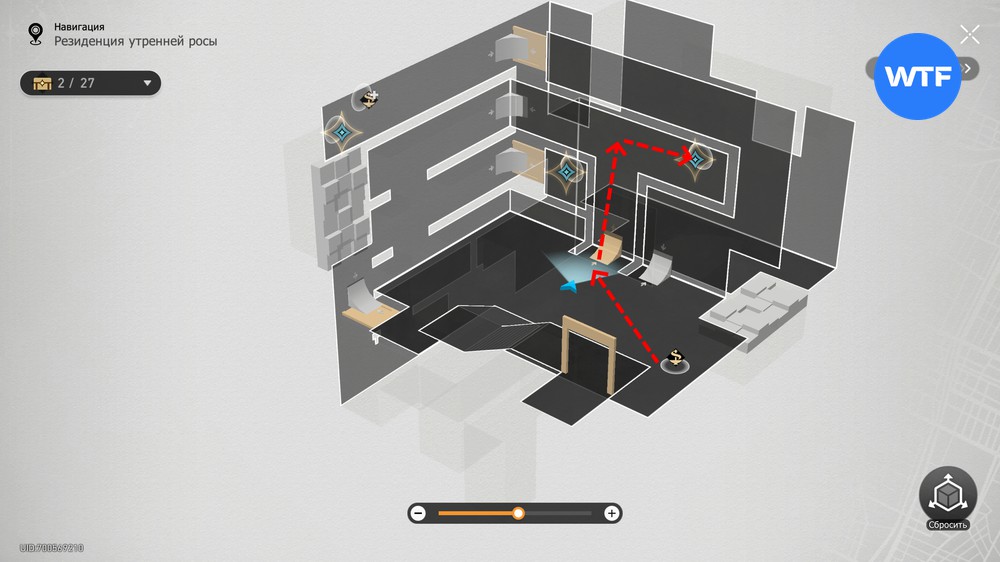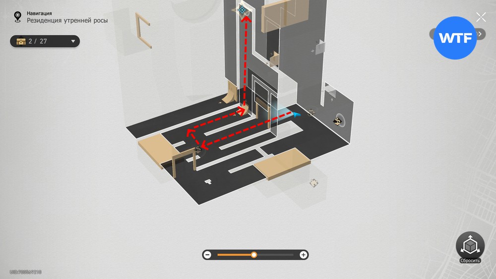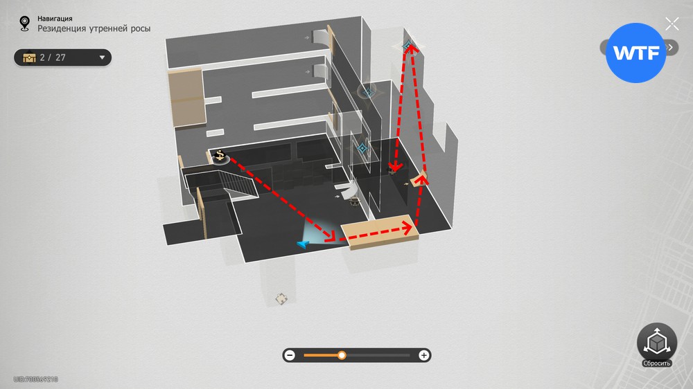 Воспользуйтесь точкой быстрого перемещения «Приёмный зал» на втором этаже локации «Резиденция утренней росы» и от неё бегите на север, а затем по балкону направо. Поговорите с Бёртоном, это откроет доступ в область с трехмерной картой к востоку от него.