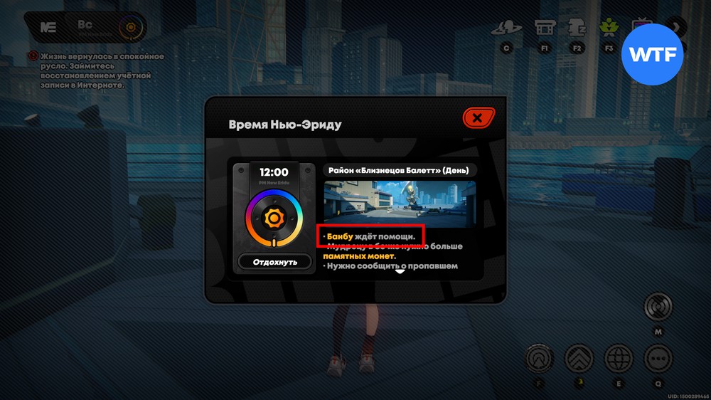 Обязательно загляните к нему, чтобы получить очередную порцию подсказок. После этого банбу начнут появляться в локации. Обратите внимание, что зайти к инспектору нужно именно на Площади Люмины, из других локаций страница не откроется.