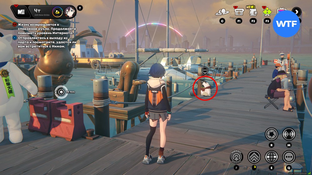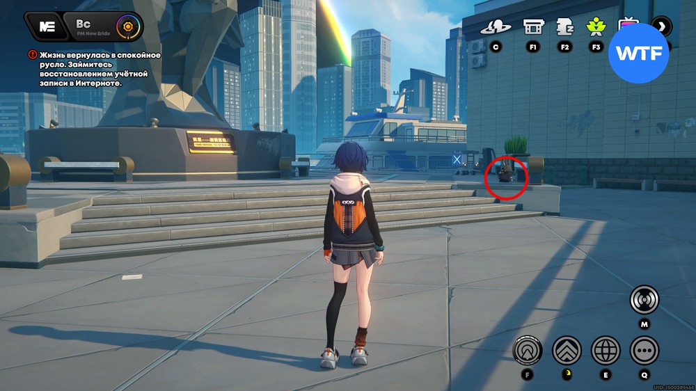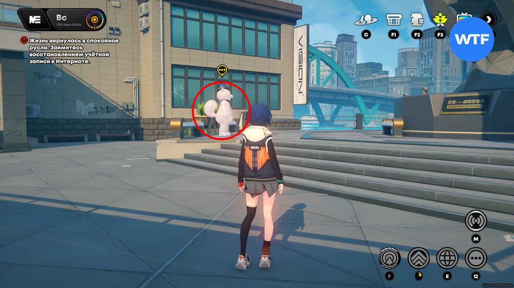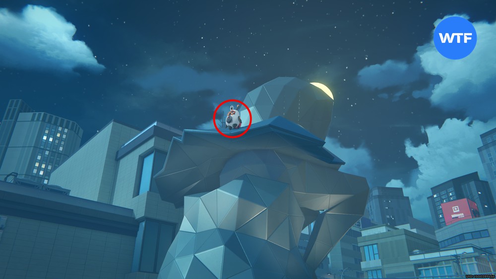 Переместитесь к инспектору Мяучело и обойдите статую с задней стороны. Наверху вы увидите бездомного банбу, который ждет своего хозяина. Сделайте фото и вернитесь к Рэйне, чтобы завершить это задание.