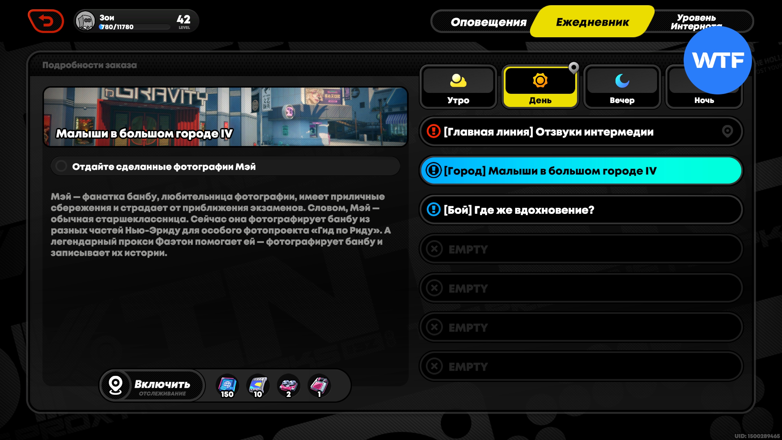 После этого Мэй будет ждать вас в светлое время суток на старом месте — в Пешеходной зоне Площади Люмины, напротив входа в Клуб АИК. Принесите ей фото банбу Прорабу со Стройплощадки на улице Казарок, чтобы завершить это задание.