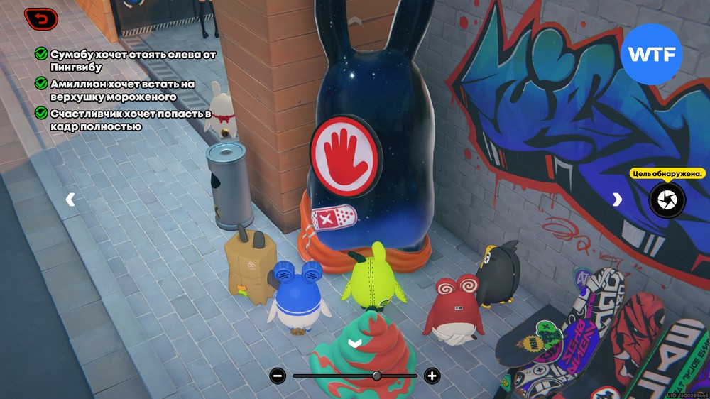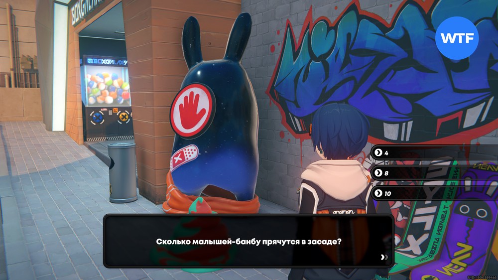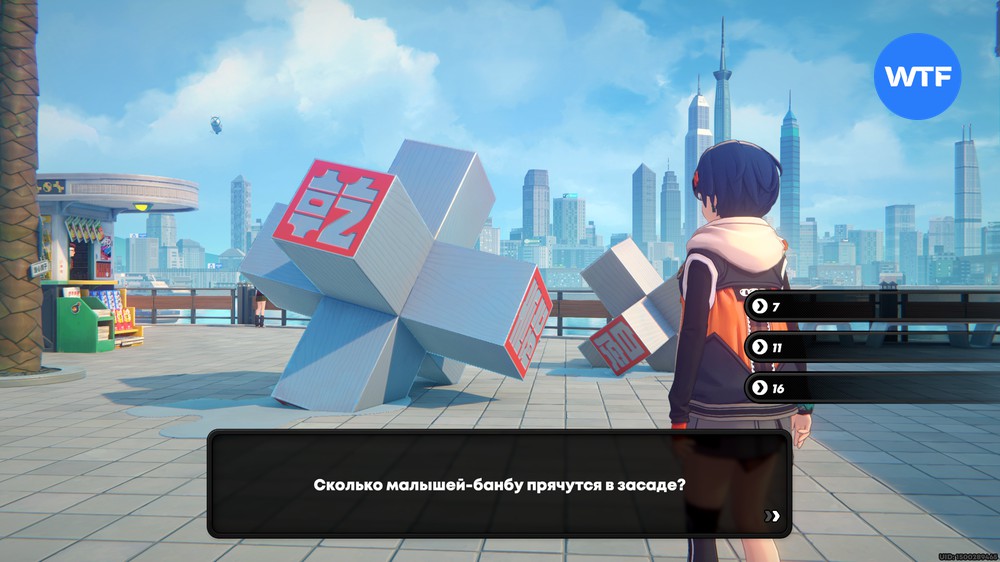 Для этого отправляйтесь к статуе банбу возле магазина игрушек «Вселенная в коробке» и выберите вариант «Тренировка засады». Быстро передвигайте камеру, чтобы найти всех банбу и сосчитать их.