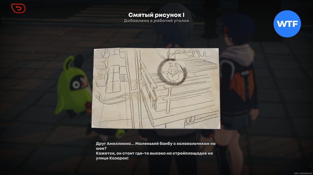 Вернитесь к малышам-банбу и снова с ними поговорите. На этот раз вы получите Смятый рисунок II, по которому нужно отыскать банбу Не-Твоё-Дело на Площади Люмины.
