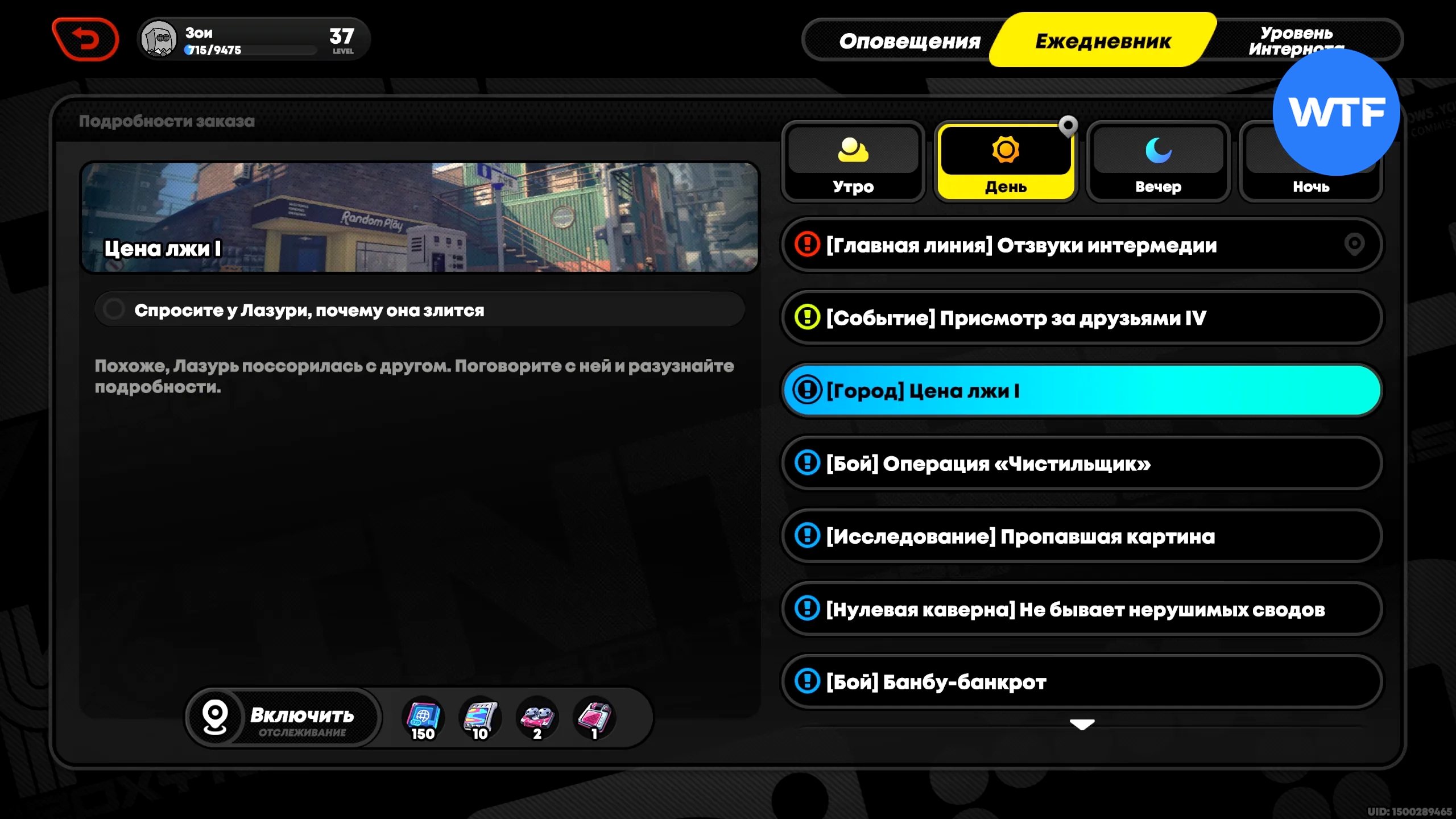 В светлое время суток справа от входа в кинотеатр Gravity там можно найти Йохана. Он попросит вас поговорить с его подругой и выдаст квест «[Город] Цена лжи I». Завершите это задание, а затем откройте экран оповещений Интернота.