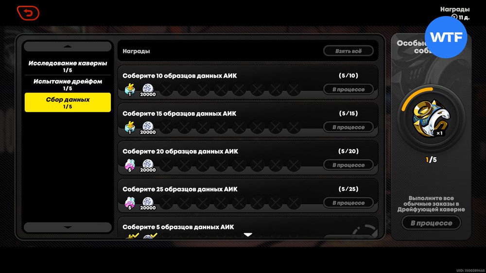 Награды из раздела «Сбор данных» выдаются за сбор образцов данных АИК при прохождении заказов Дрейфующей каверны. Всего здесь можно получить 3 банбулета, 10 виджетов системы банбу и 100000 денни.