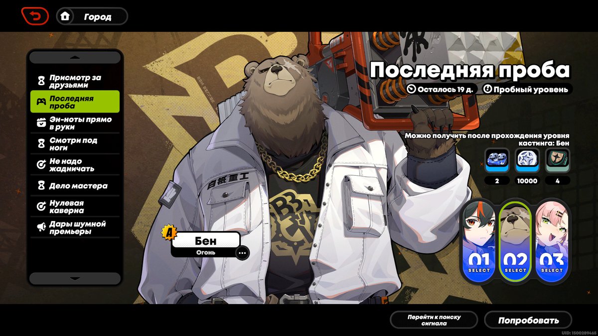При игре за Бена основная задача сводится к блокированию входящего урона за счет использования особой атаки, контратаке и активации щита для отряда усиленной ешкой. В остальном он будет уступать место на поле другим агентам, дополнительно выходя для цепочек атак и помощи в защите.