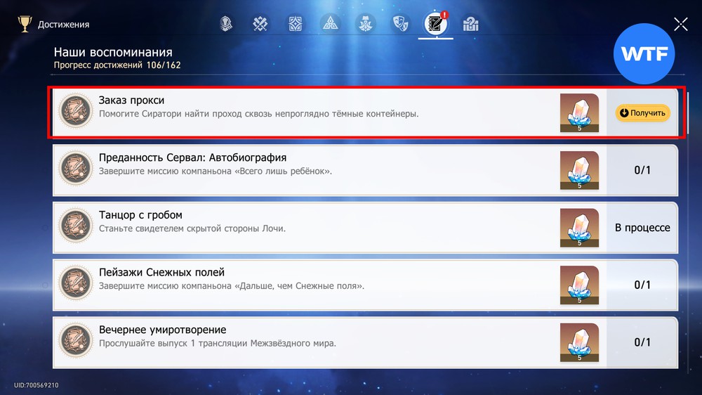 Достижение «Заказ прокси» в Хонкай Стар Рейл