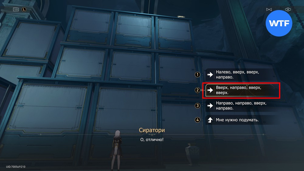 Переведя зашифрованный текст, получим следующий набор букв WDWW, что соответствует кнопкам движения на клавиатуре и следующему пути внутри контейнера: