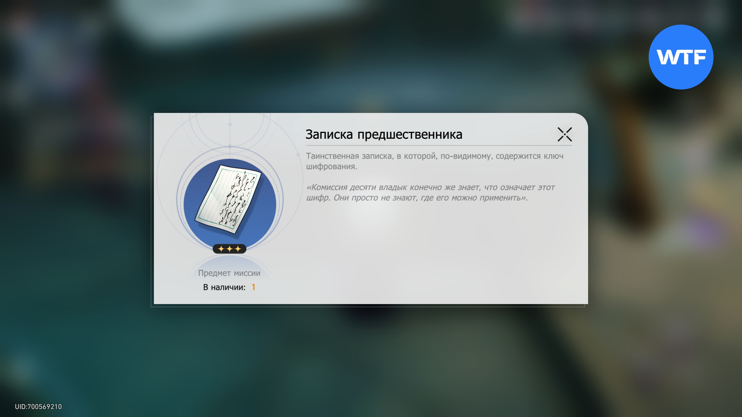 Таинственная записка, в которой, по-видимому, содержится ключ шифрования. Комиссия десяти владык конечно же знает, что означает этот шифр. Они просто не знают, где его можно применить.