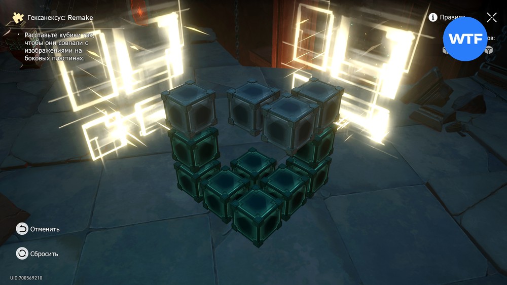 Чтобы решить головоломку четвертого гексанексуса, необходимо расставить четыре кубика в правильные позиции — они показаны на скриншоте ниже.