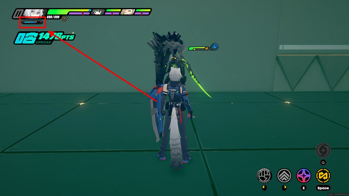 Усиленная особая атака — наиболее удобный способ накопления «Порыва». Используйте ешку, а затем сразу же зажмите кнопку базовой атаки, чтобы выполнить атаку «Раскат грома — Шок». После этого используйте быструю помощь, чтобы переключиться на агента Аномалии и дать ему щит.