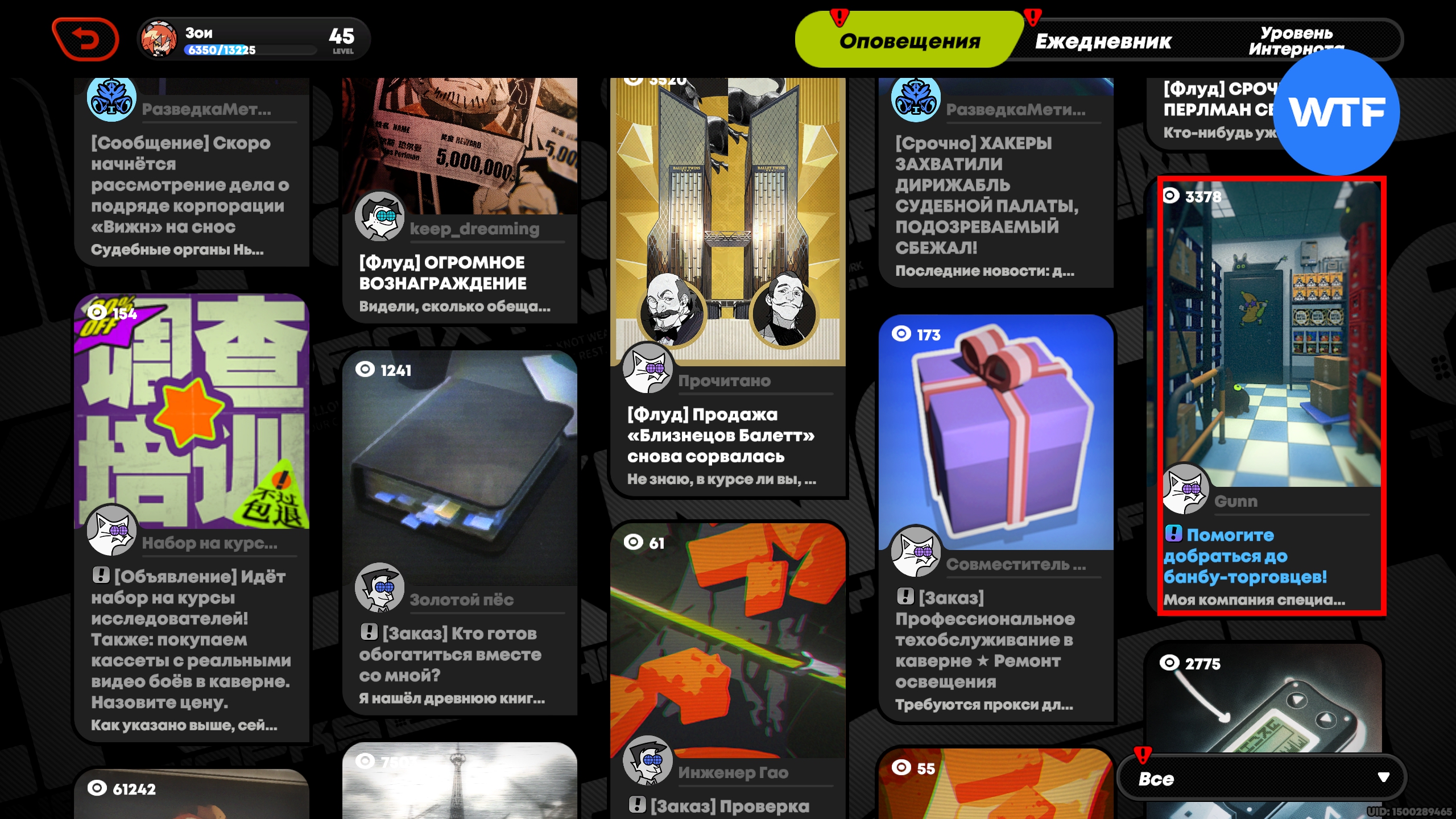 Чтобы разблокировать квест «Запасы на черный день» в Zenless Zone Zero, откройте раздел оповещений Интернота и найдите пост от пользователя с ником Gunn. Возьмите заказ, после чего в вашем ежедневнике появится нужное задание.