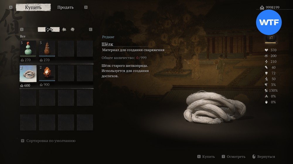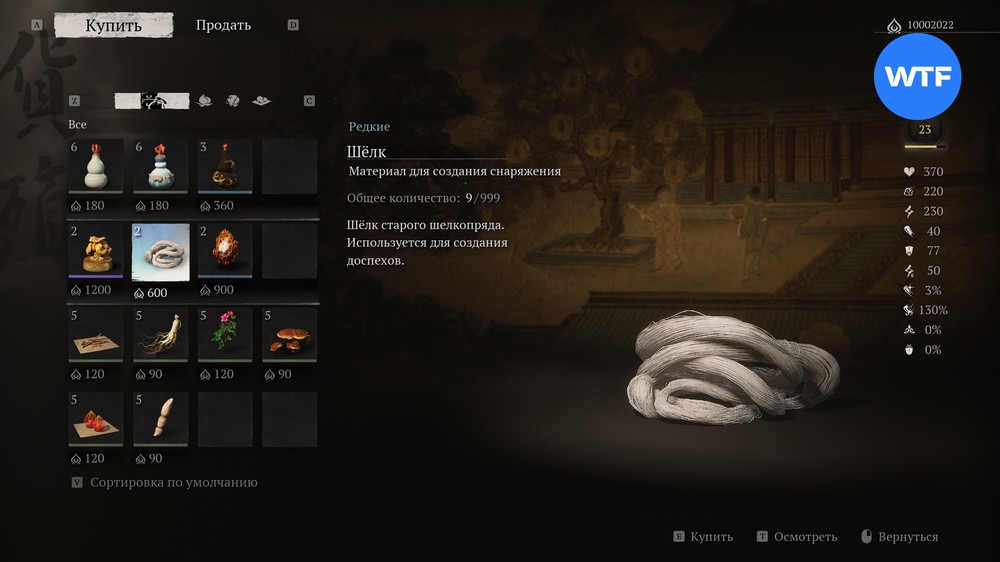 - 2 шелка мы смогли купить за 1200 воли на алтаре в Старом храме Гуаньинь. Вы попадаете туда, позвонив в три колокола возле арен с боссами Сюцай в белых одежах, Гуан-чжи и Гуан-моу.