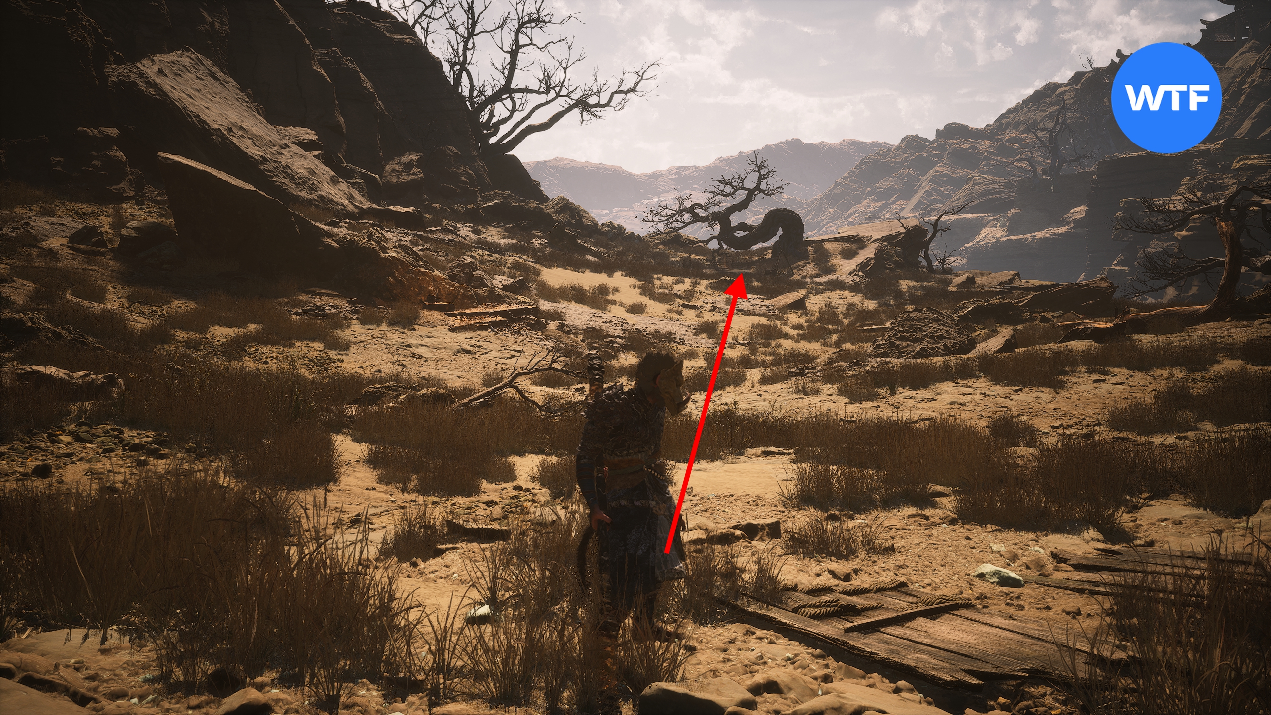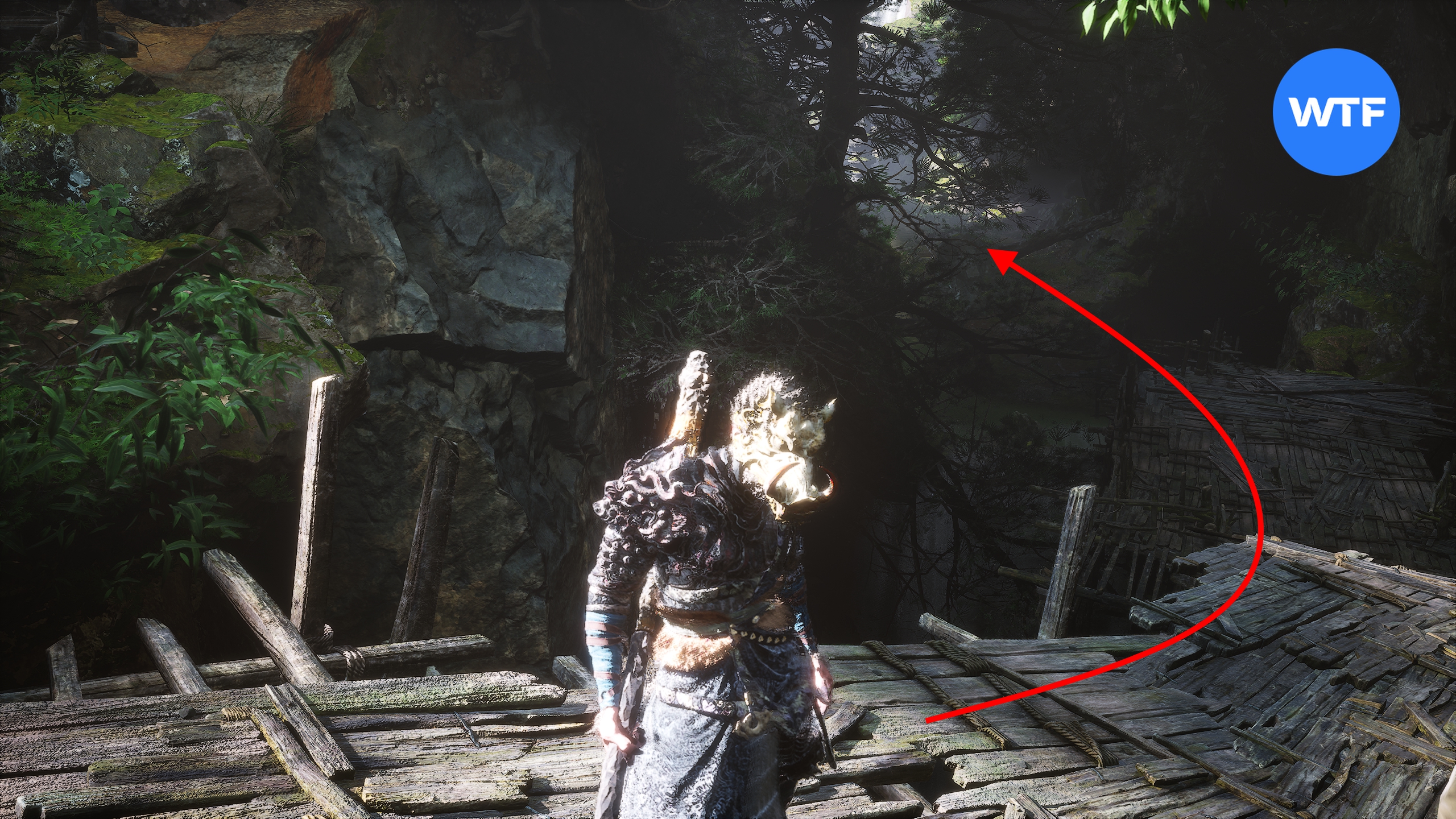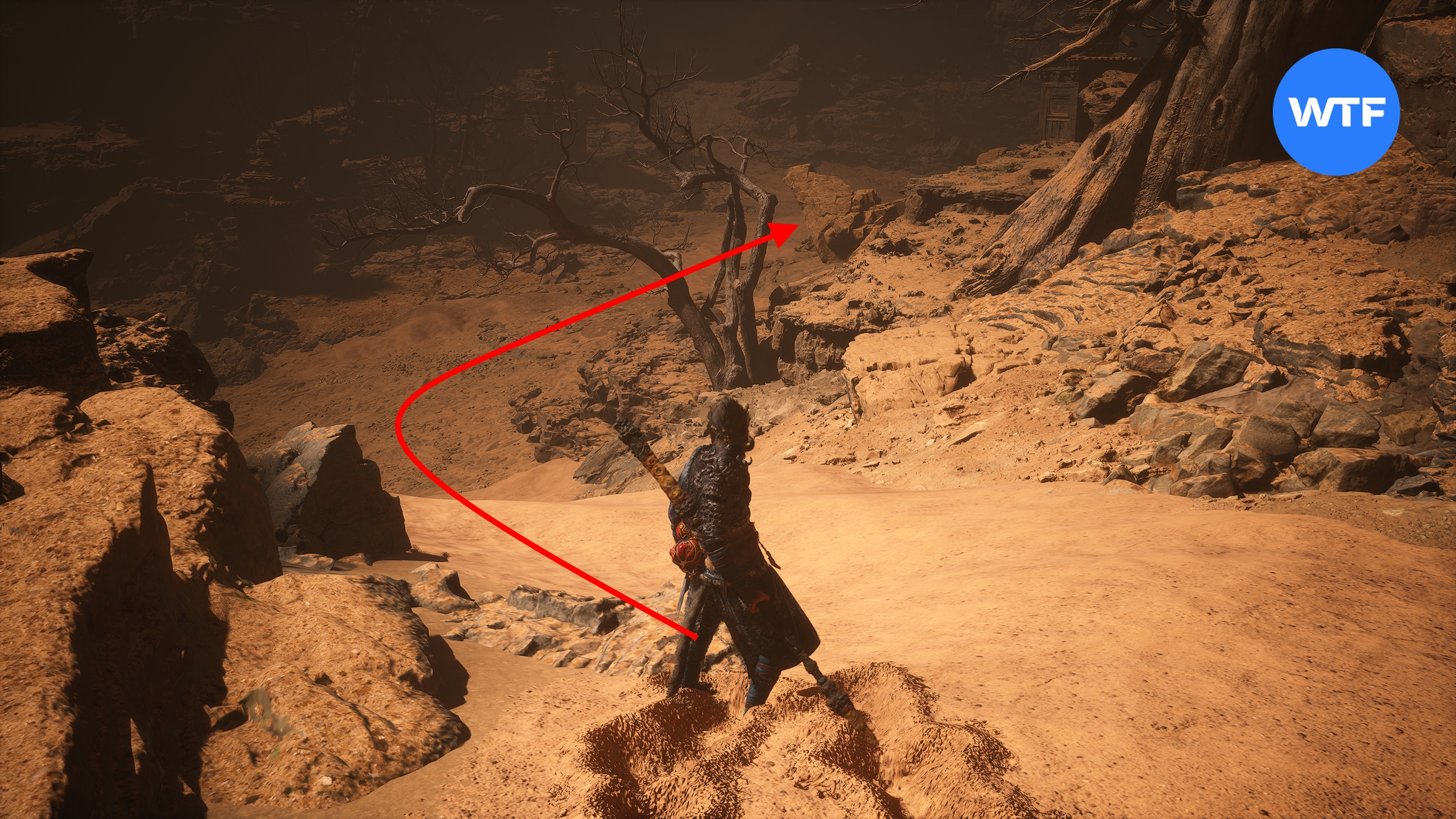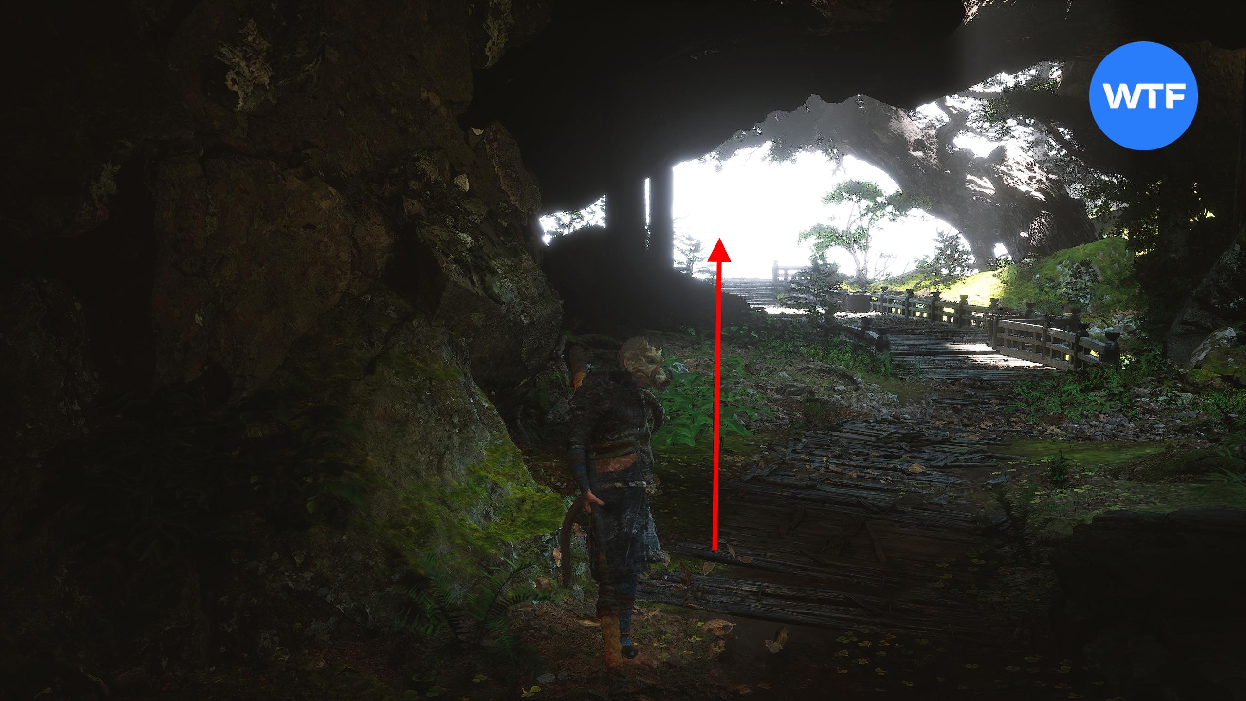 Затем пройдите через пещеру насквозь и посмотрите направо. Там вы увидите небольшой деревянный заборчик, который можно сломать. Прямо за ним откроется скрытая тропа между скалами.