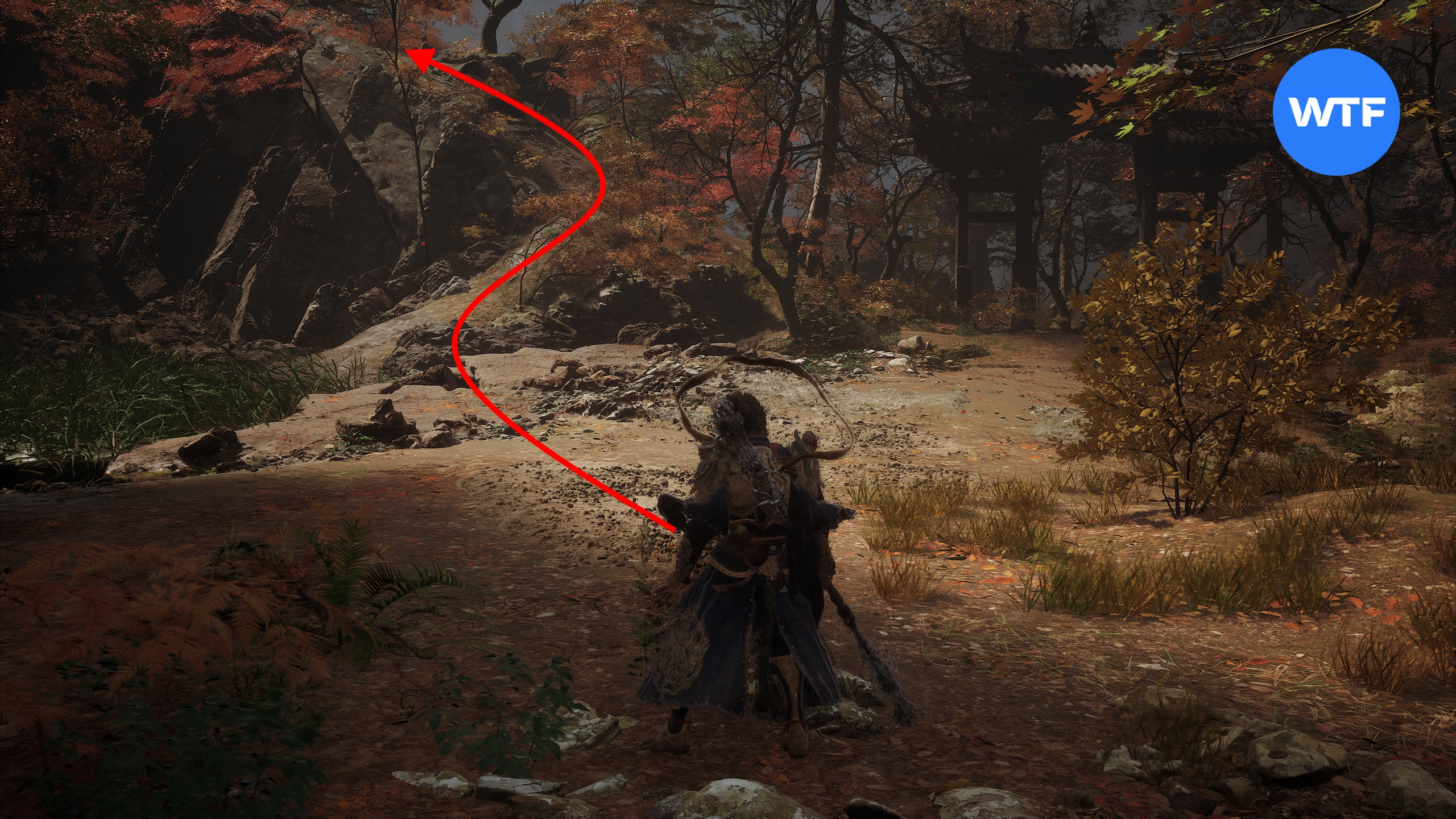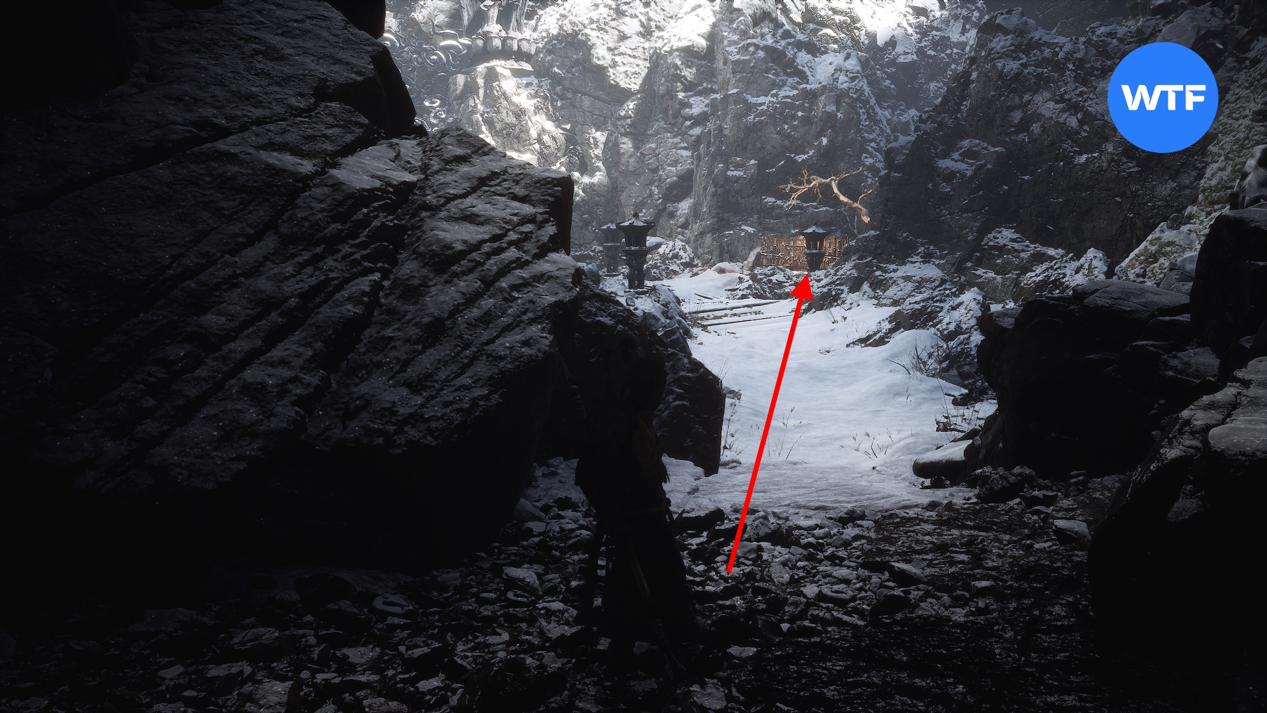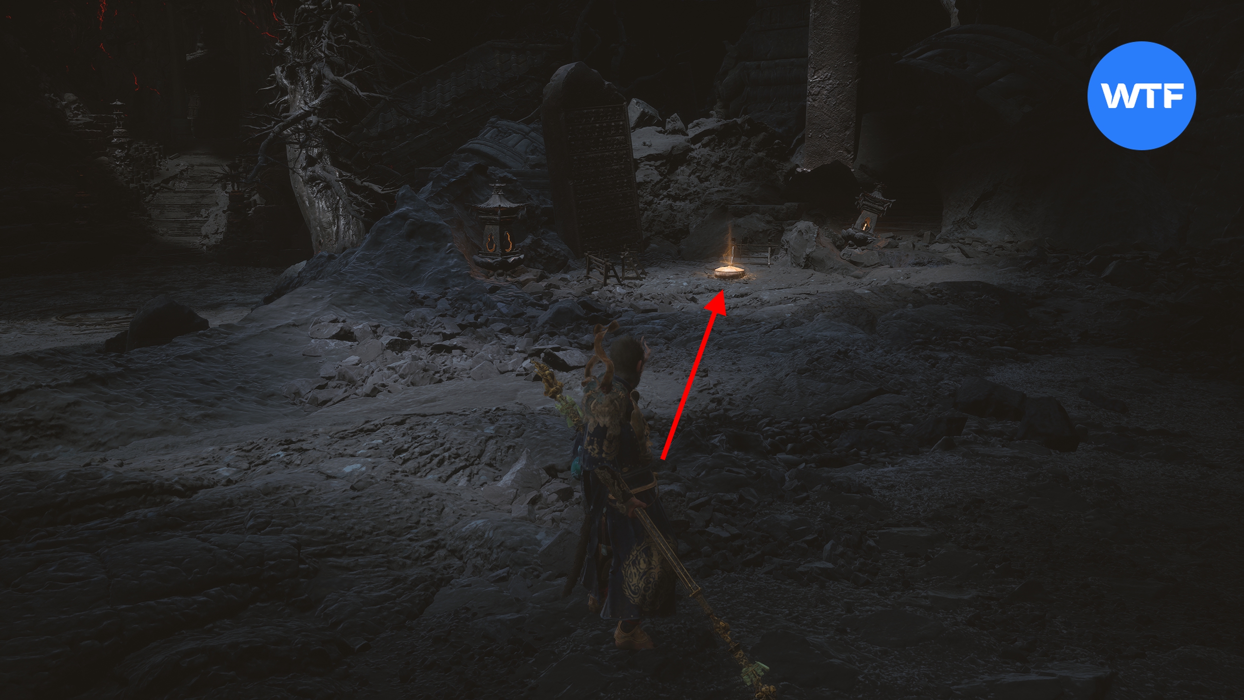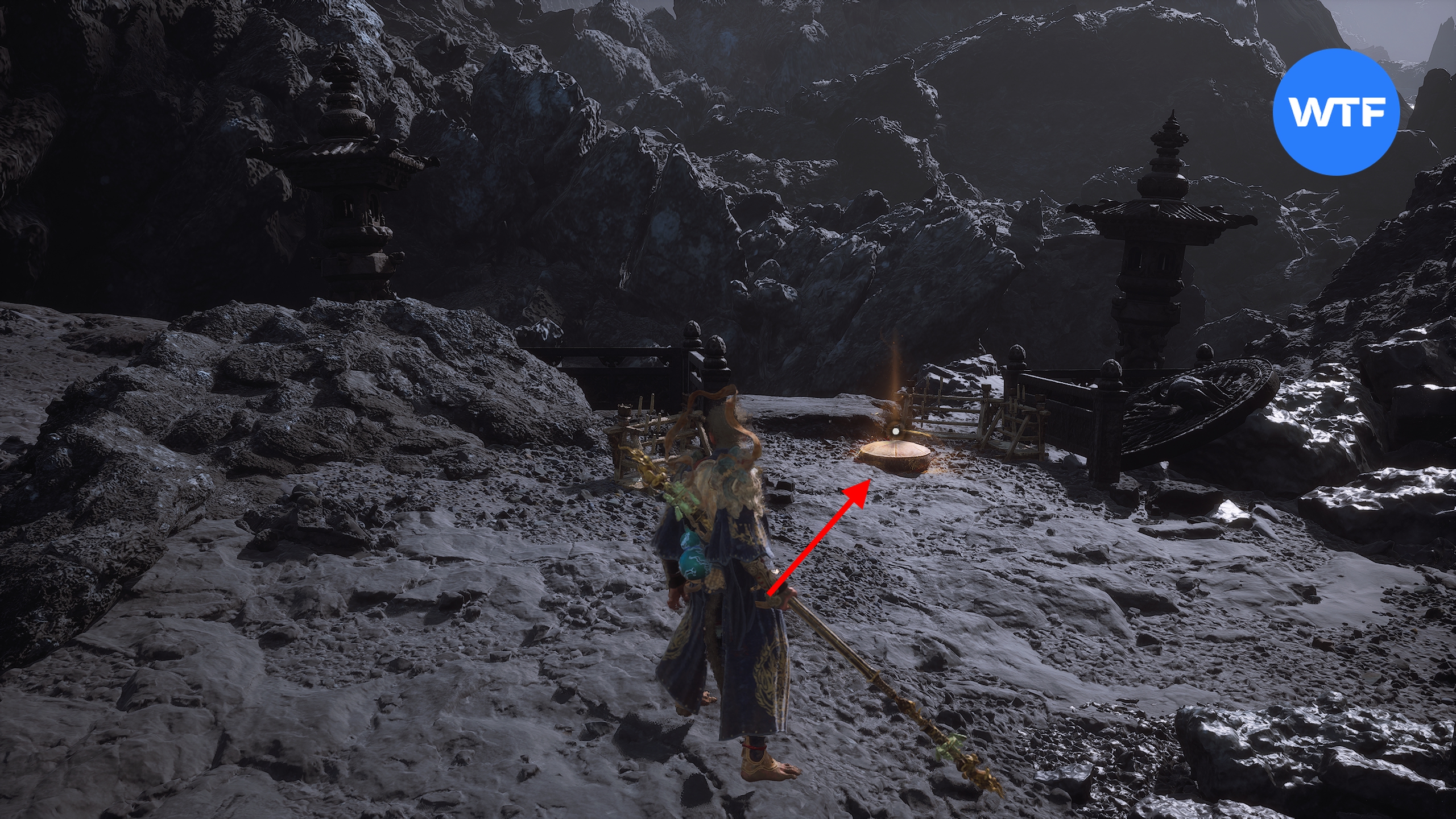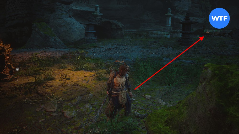 После этого доберитесь до алтаря «Скрытое место: пещера Бишуй [Яма очищения]», станьте к нему спиной и посмотрите направо, чтобы увидеть эту площадку для медитации вдалеке.