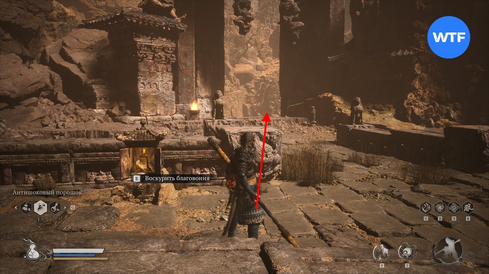 Обязательно осмотрите статую за ареной, где вы сражались со Стражем-тигром, чтобы открыть спуск в Погреб. Это локация, где находится магазин Сюй Дога. В нем можно изготовить особые пилюли, навсегда повышающие ваши характеристики, в обмен на материал «Крупица разума».