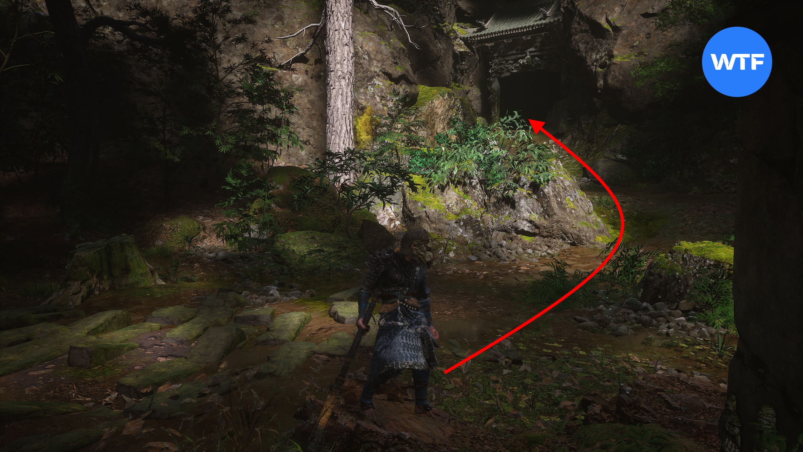 Станьте лицом к алтарю «Бамбуковая роща [Дальние холмы]» и от него бегите вниз по тропинке слева. После окончания спуска снова посмотрите налево, чтобы увидеть вход в пещеру. Заходите внутрь и идите направо от места медитации, чтобы найти лошадь.