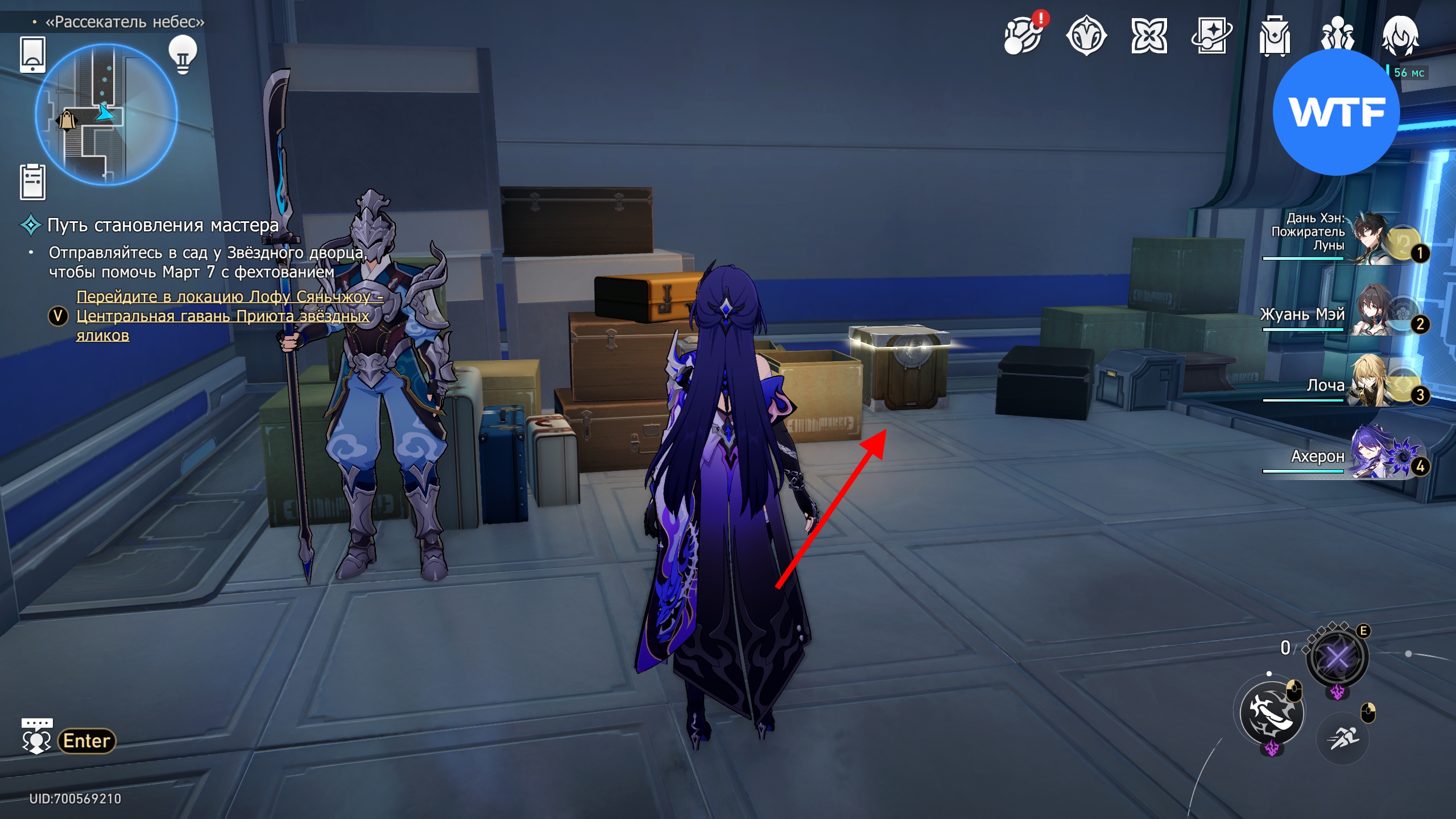 Снова вернитесь к пространственному якорю «Нижний этаж арены» и на этот раз бегите строго на восток, к противоположной стене арены. Сундук будет стоять рядом с большой кучей коробок.