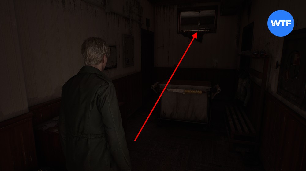 Пододвиньте тележку к окну, залезьте внутрь и пройдите через комнату 112 насквозь. Затем идите вперед по конца коридора, пока не увидите ключ за решеткой в конце.