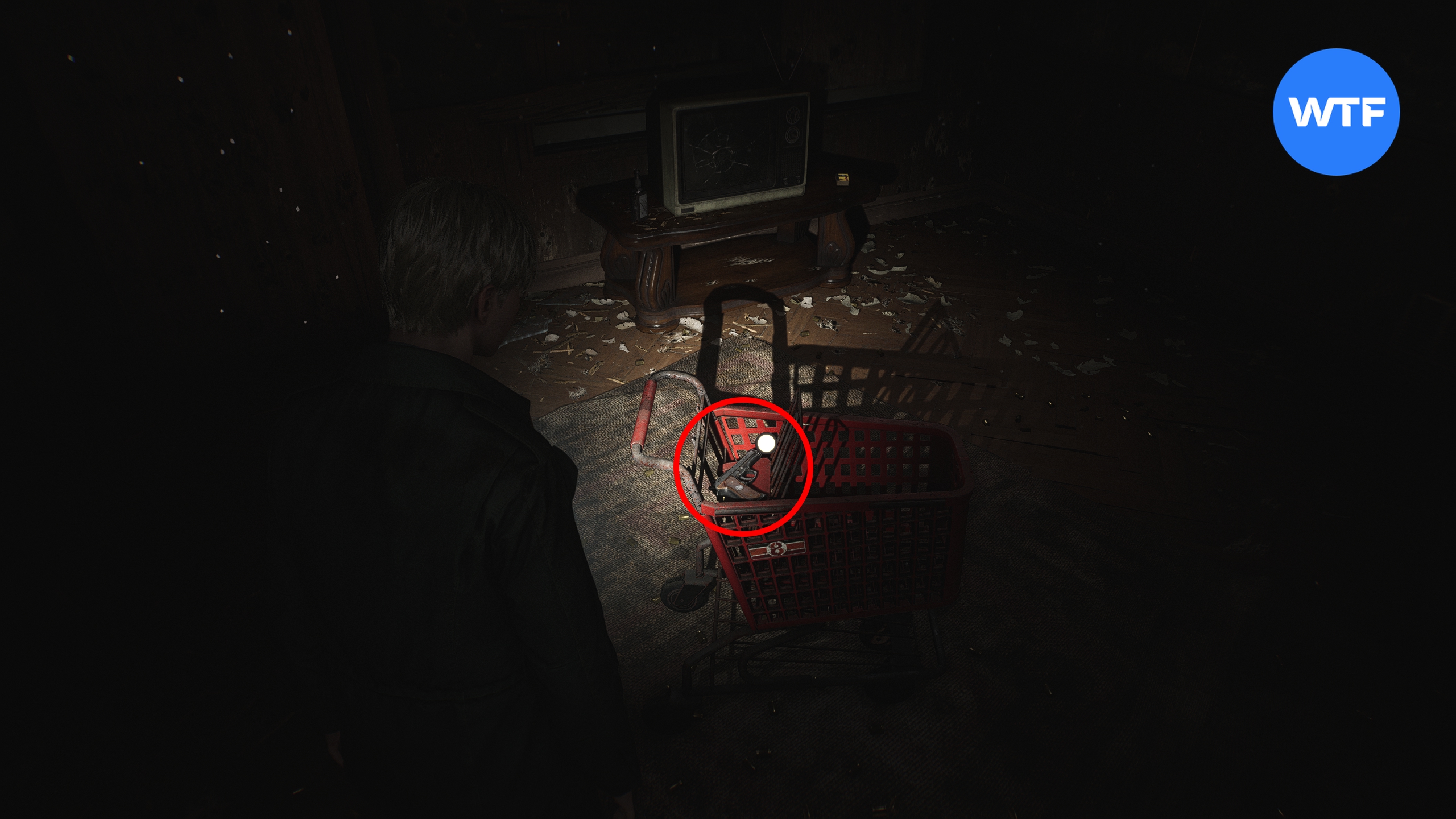 Это приведет вас в небольшой коридор, из которого в итоге можно попасть в комнату 217. В центре этой комнаты вы увидите красную тележку, внутри которой и будет лежать пистолет.