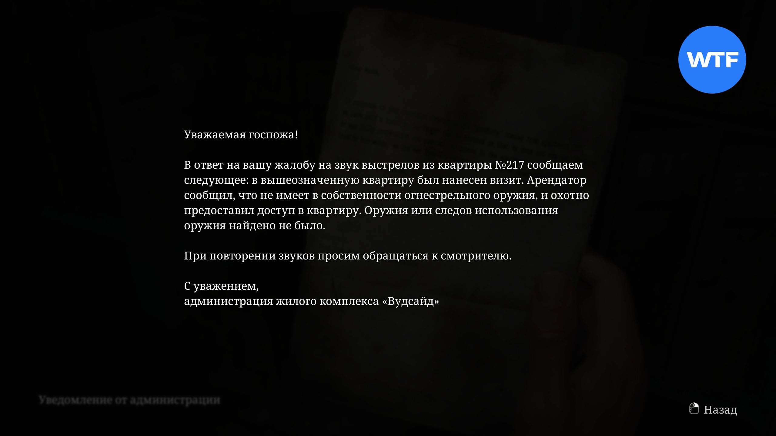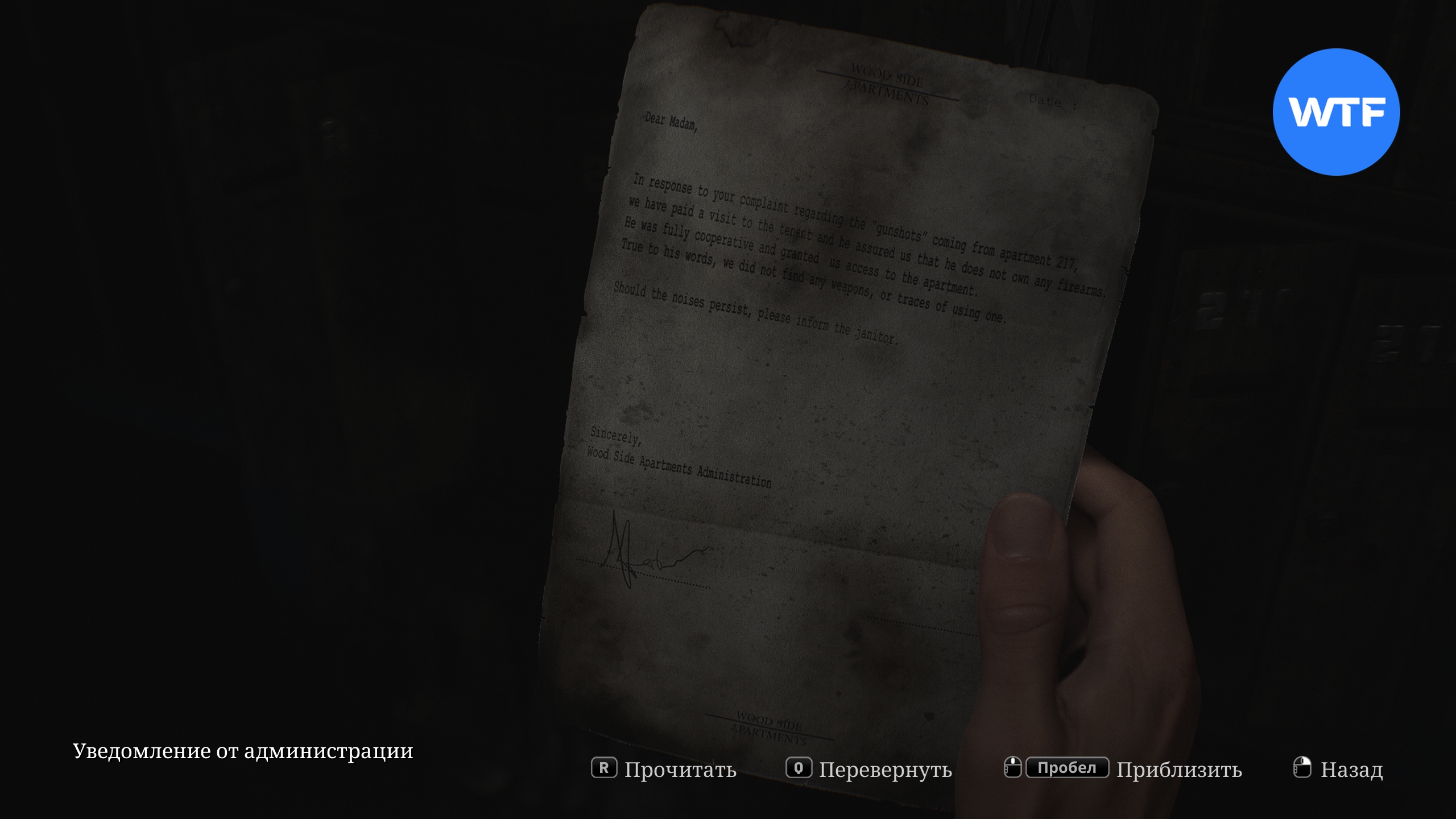 Среди почтовых ящиков под лестницей слева от главного входа можно найти уведомление от администрации, в котором есть намек на то, что искать пистолет нужно в комнате 217.