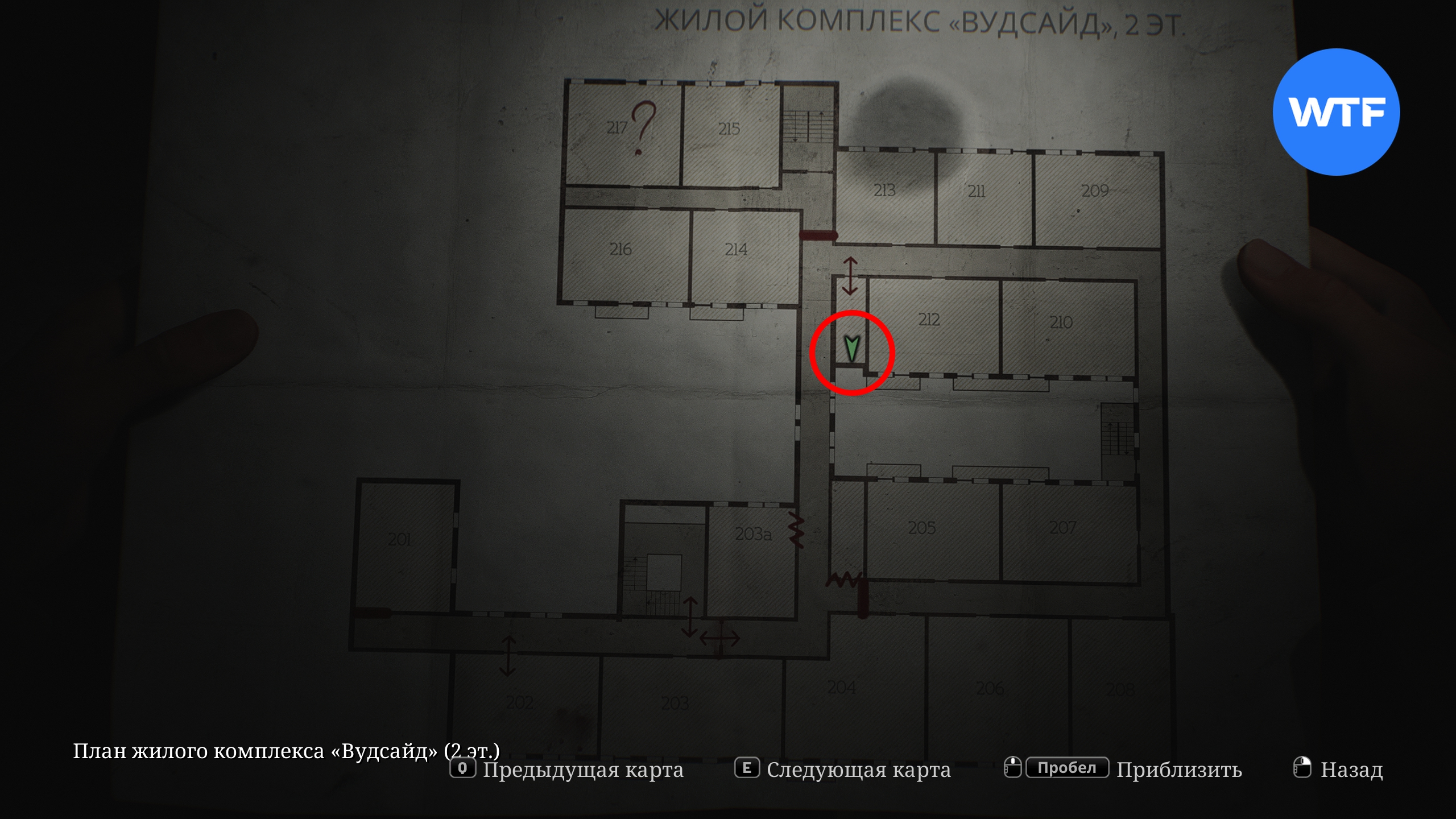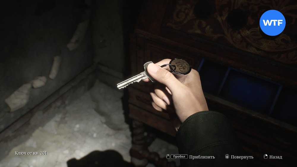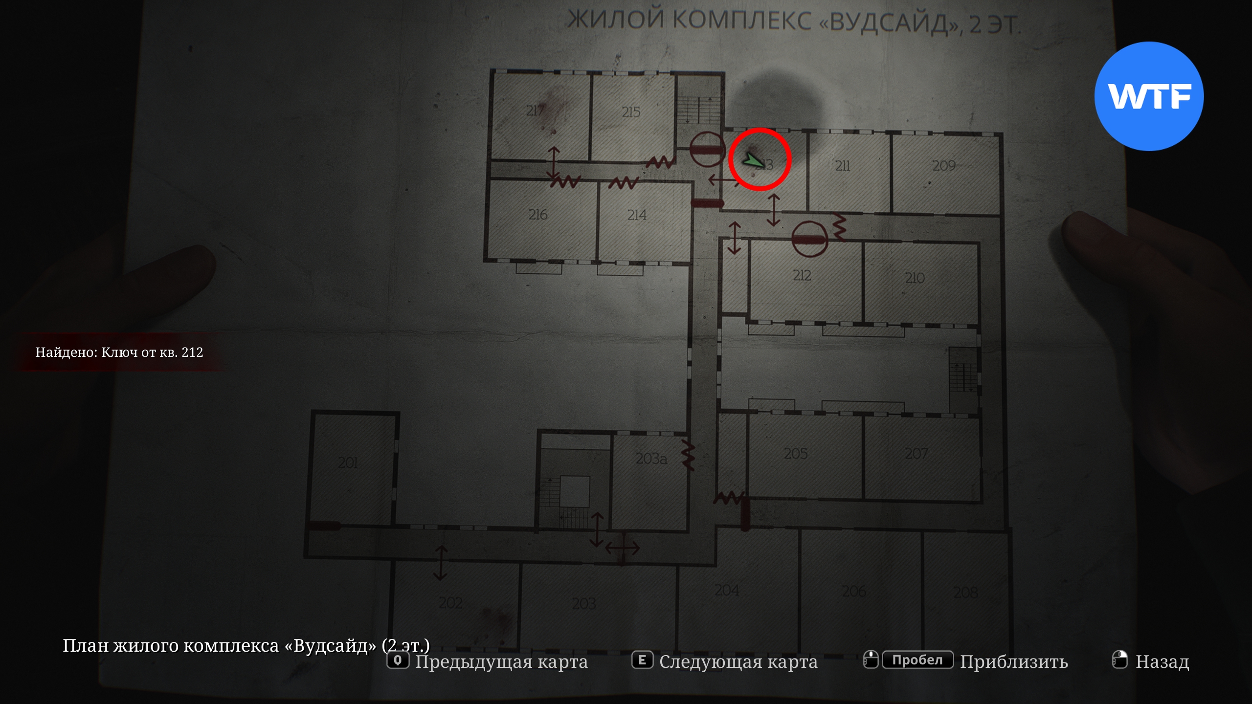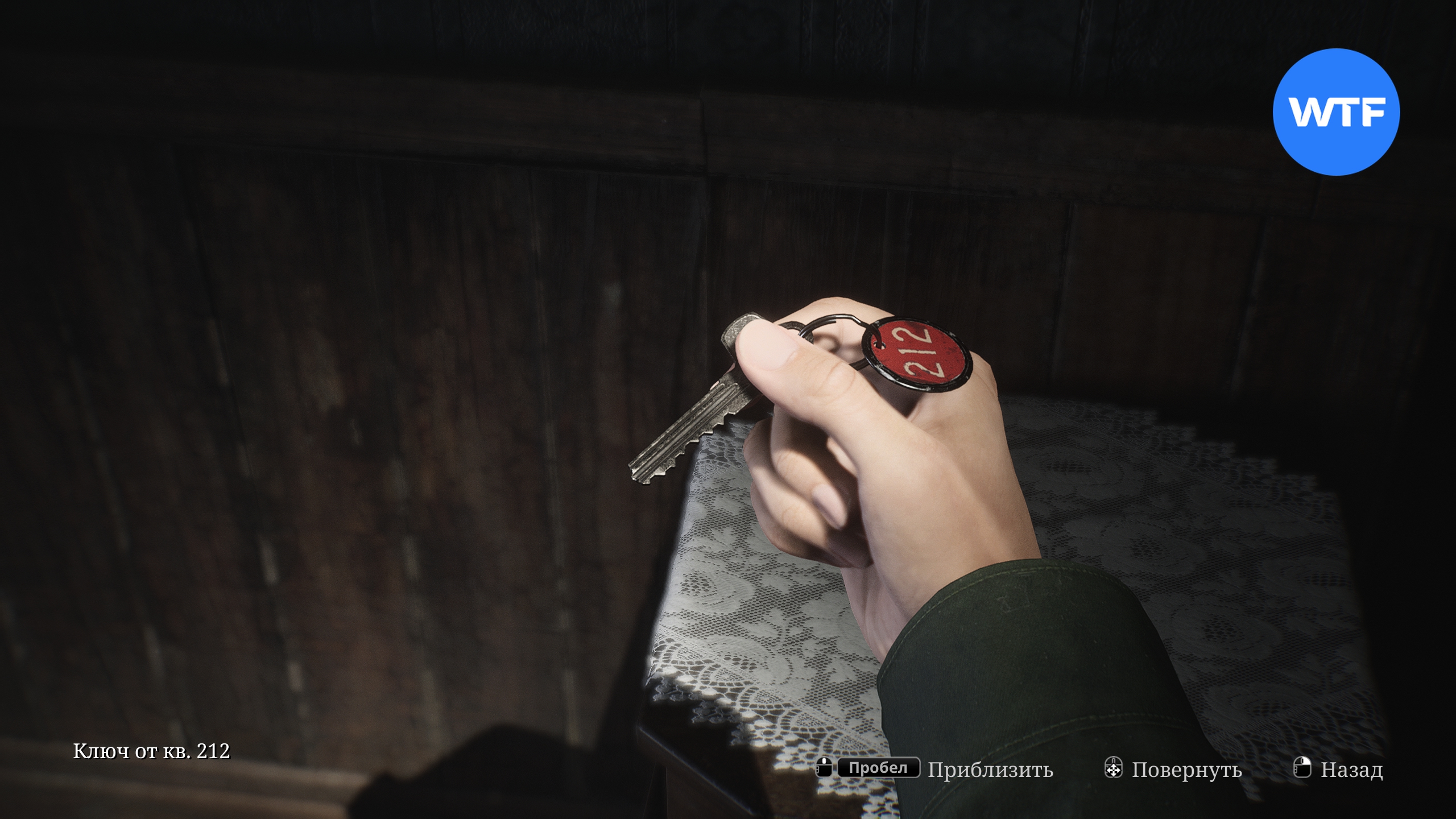 Когда вы вернетесь обратно в комнату 213 через щель в стене, вы увидите, что возле телевизора появилось тело, а на тумбочке рядом с ним — ключ от квартиры 212. Заберите его и двигайтесь дальше.