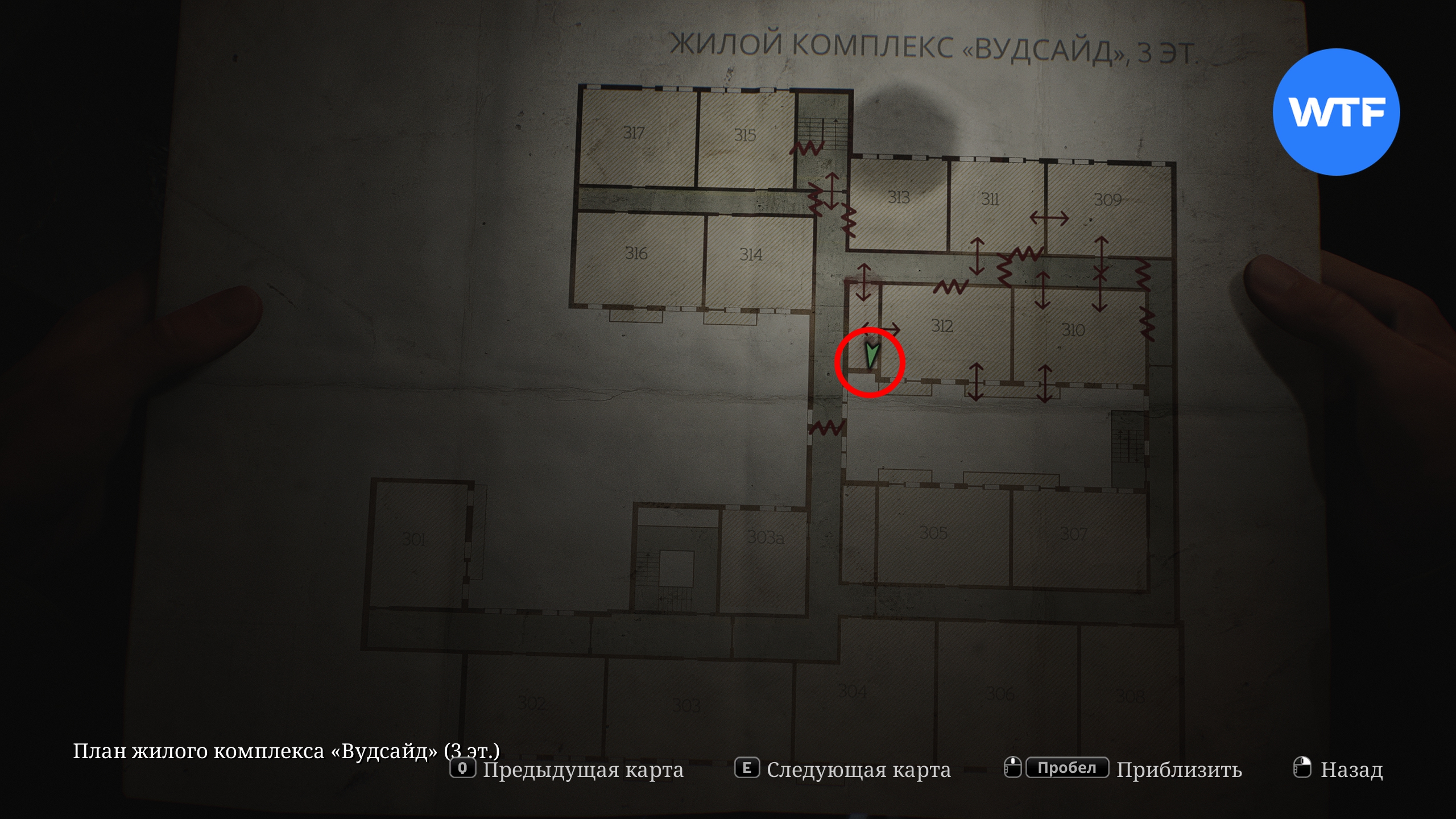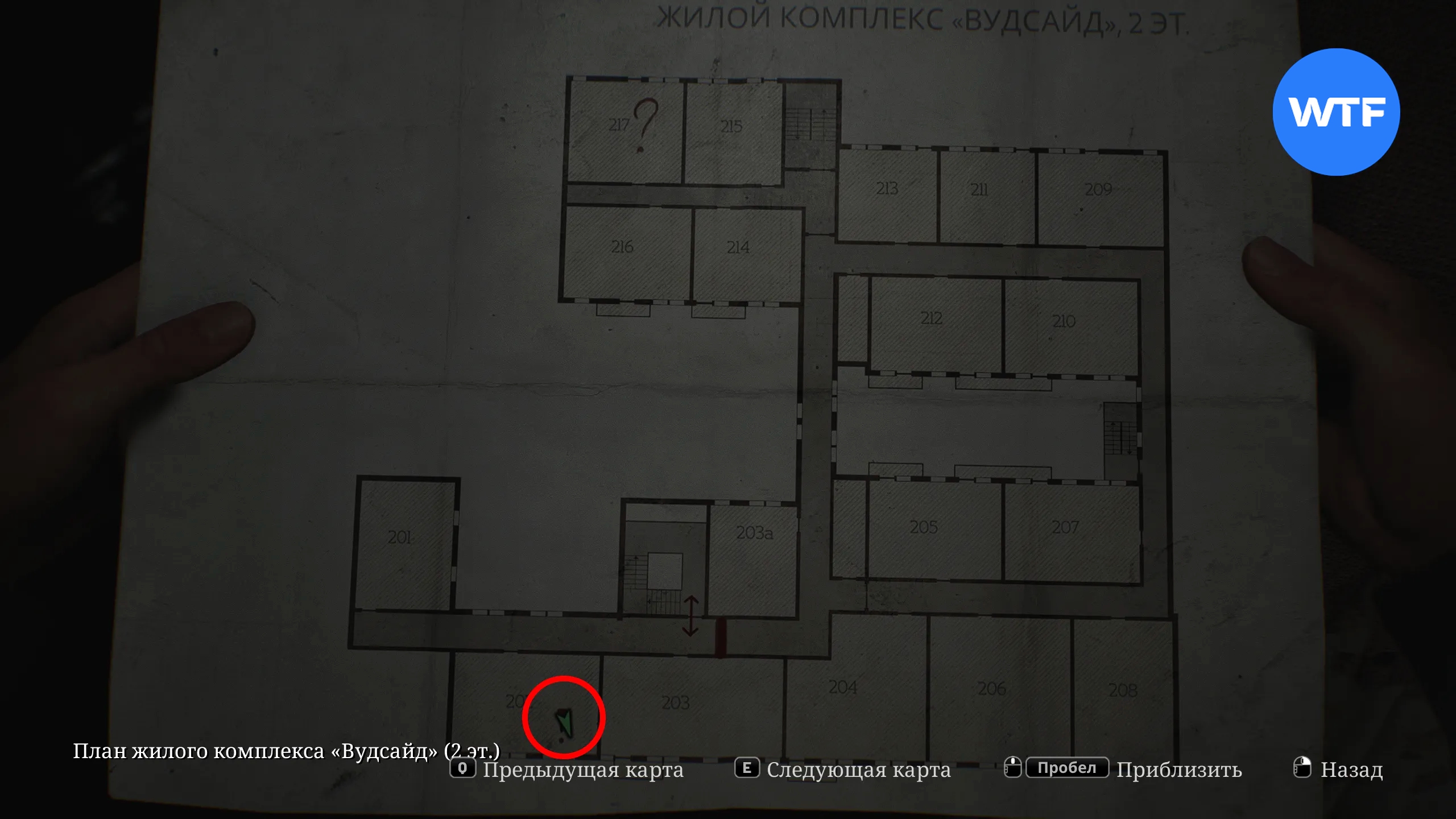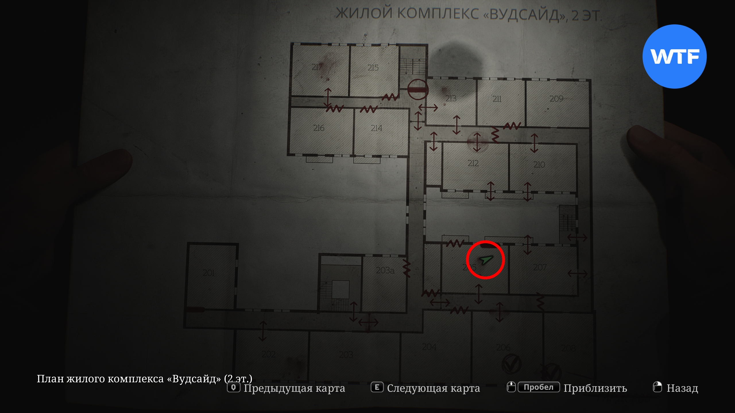 Когда вы вернетесь обратно в комнату 213 через щель в стене, вы увидите, что возле телевизора появилось тело, а на тумбочке рядом с ним — ключ от квартиры 212. Заберите его и двигайтесь дальше.