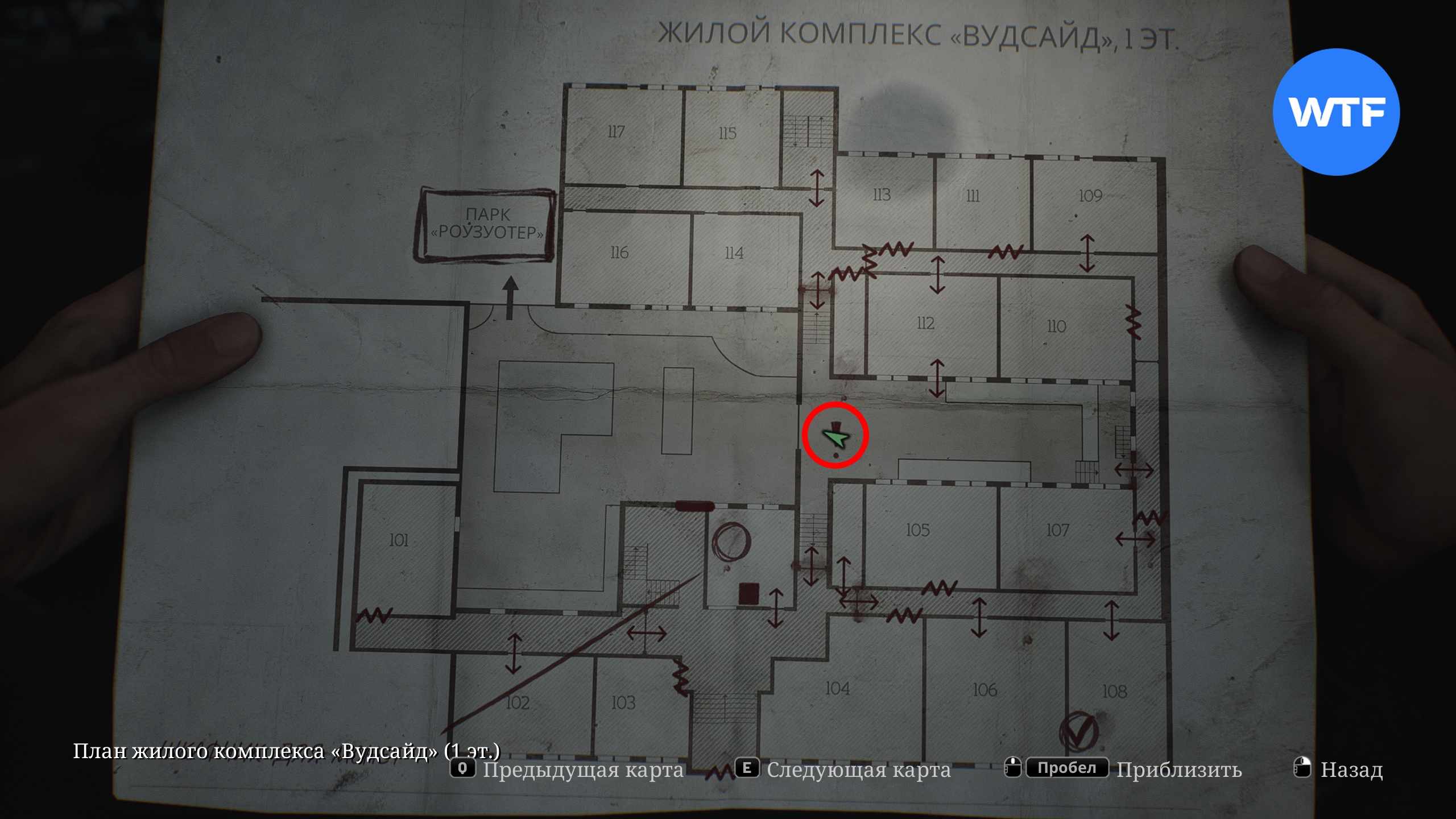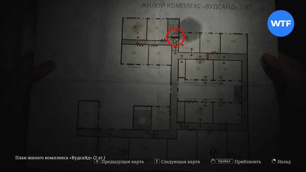 Поднимайтесь на второй этаж и используйте ключ от коридора на двойных зеленых дверях. Ваша первая цель — безымянная комната с мусоропроводом, вход в которую находится прямо напротив комнаты 213.