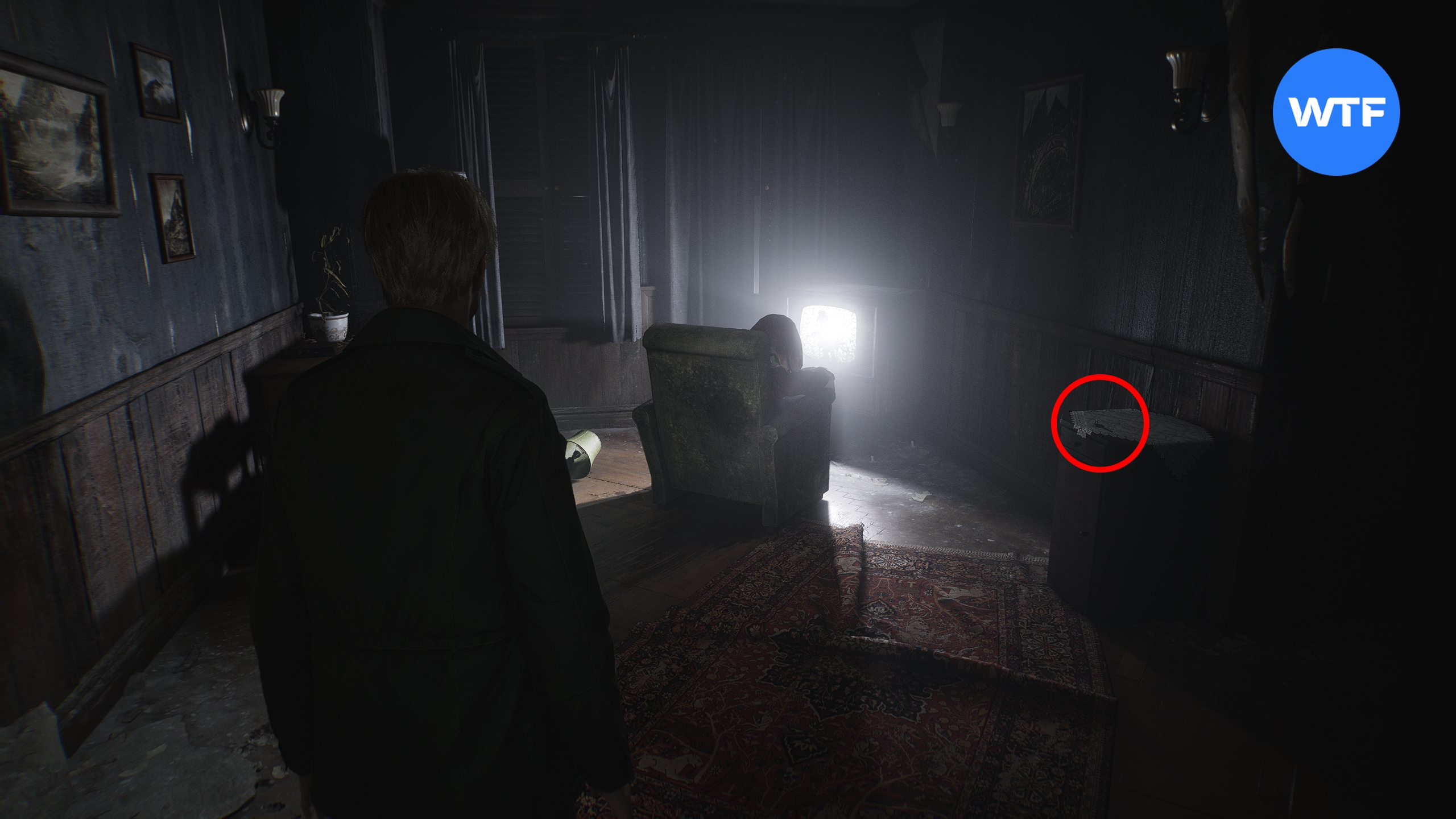 Вернитесь к комнате 213, снова пройдите через щель в стене и используйте найденный ключ на двери, заклеенной строительной пленкой справа. Затем сохранитесь и поднимайтесь по лестнице на третий этаж.