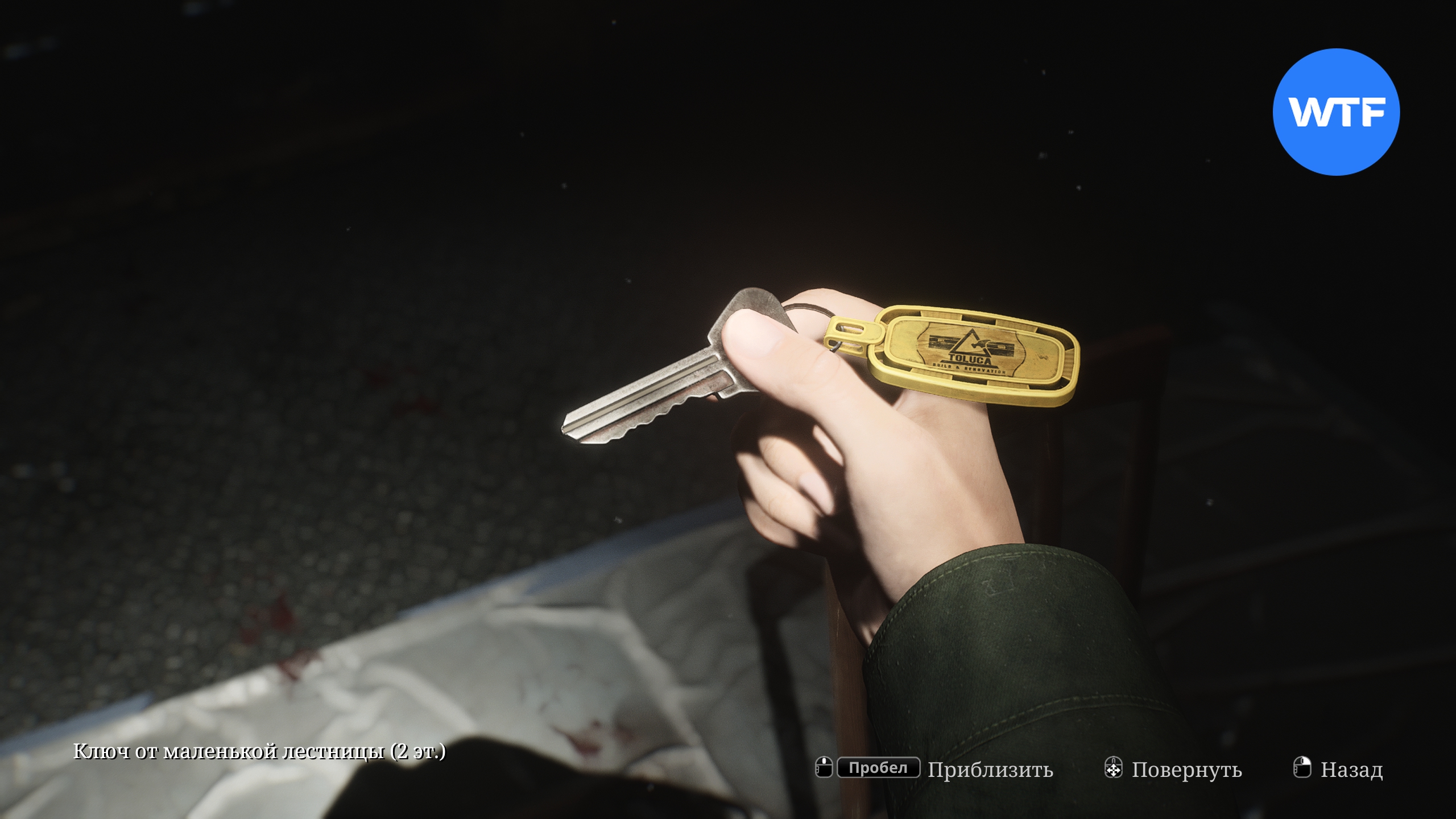 Теперь загляните в комнату 205 и заберите ключ от маленькой лестницы (2 эт.), лежащий на стуле посередине.