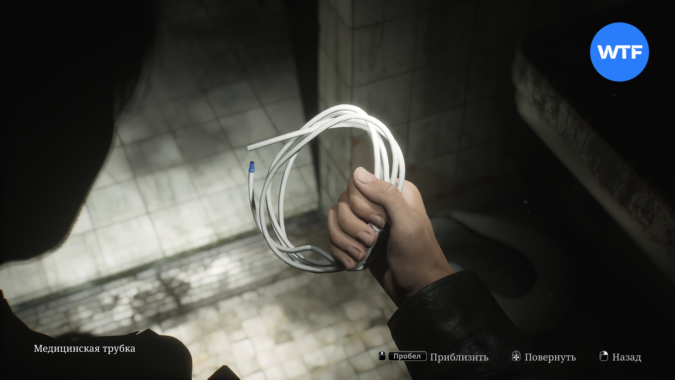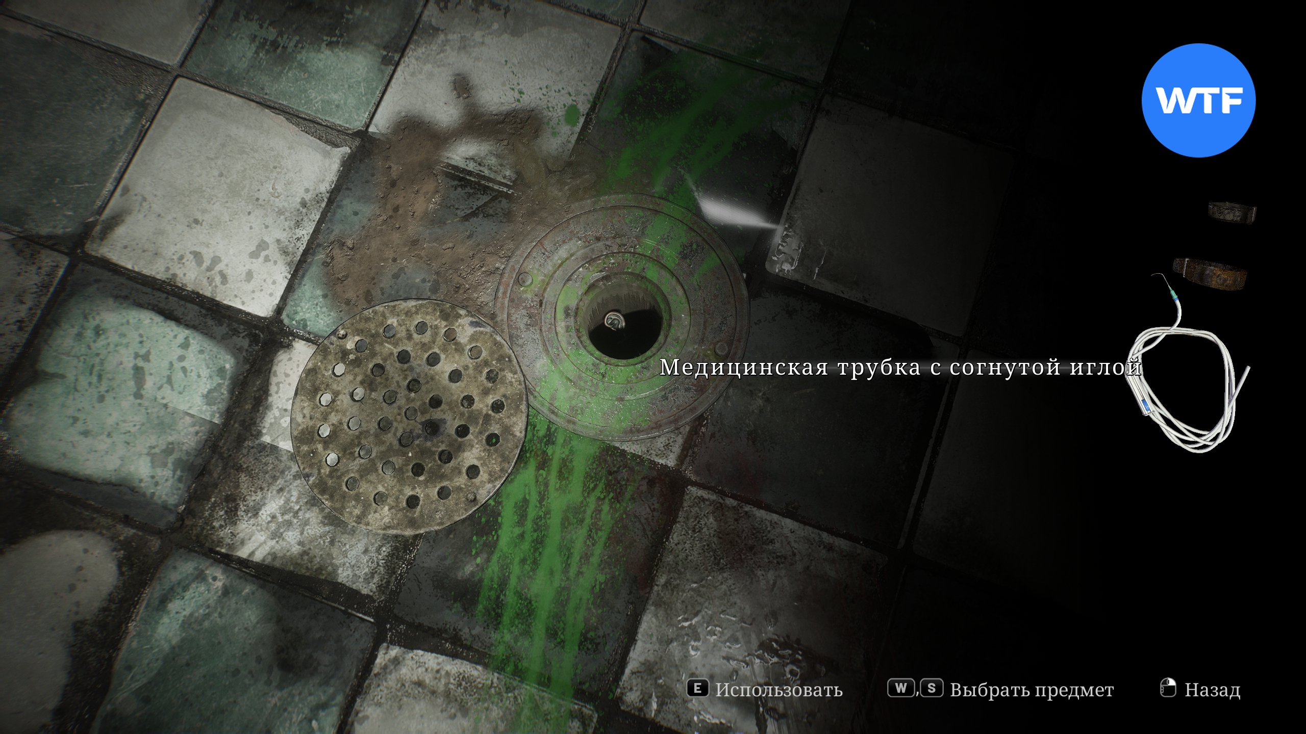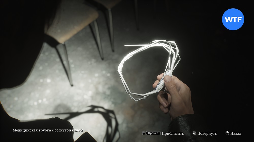 Теперь зайдите в свой инвентарь и объедините медицинскую трубку с согнутой иглой, которую вы нашли в женской раздевалке на втором этаже ранее. Так вы получите новый предмет — медицинскую трубку с согнутой иглой.