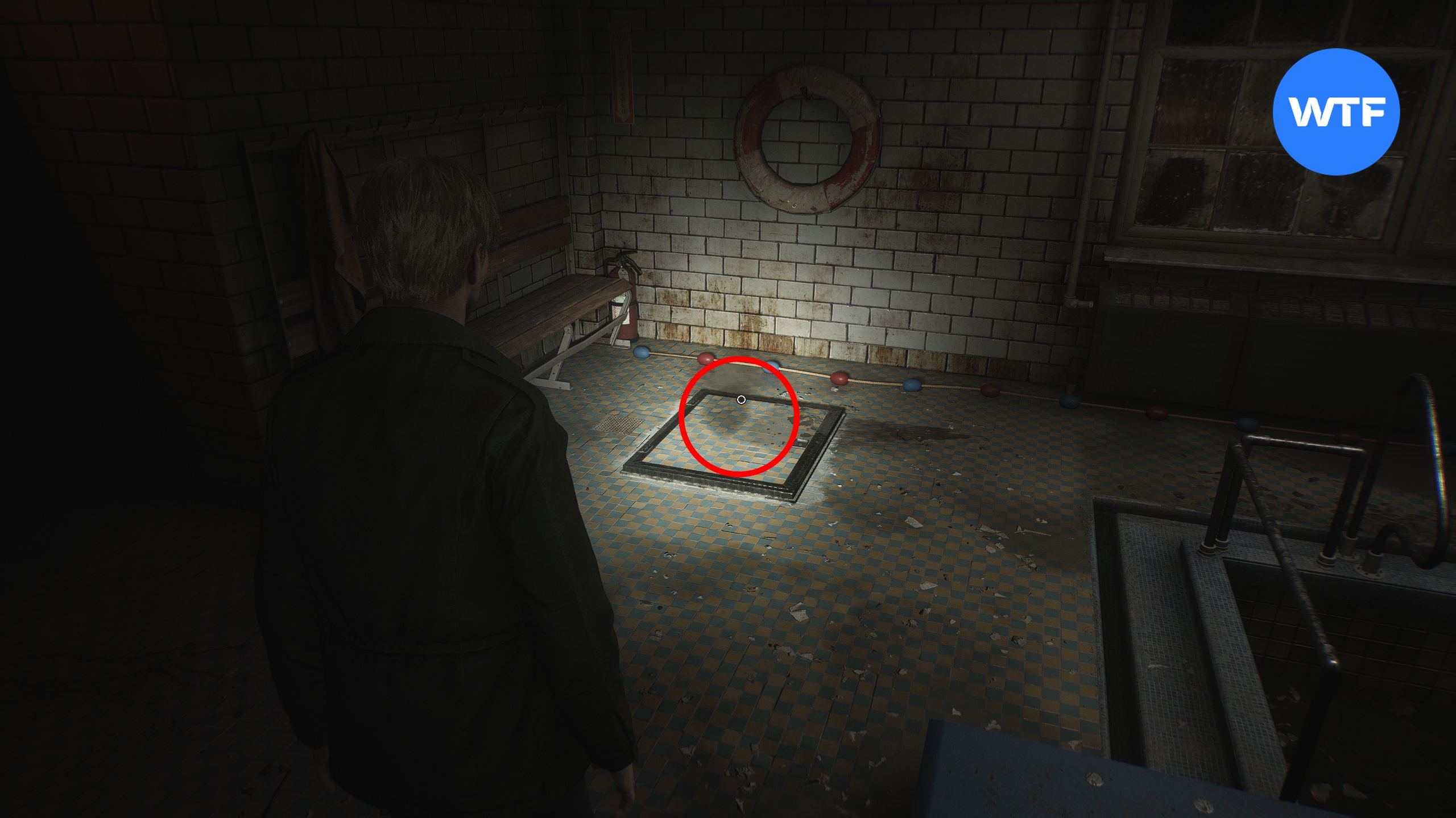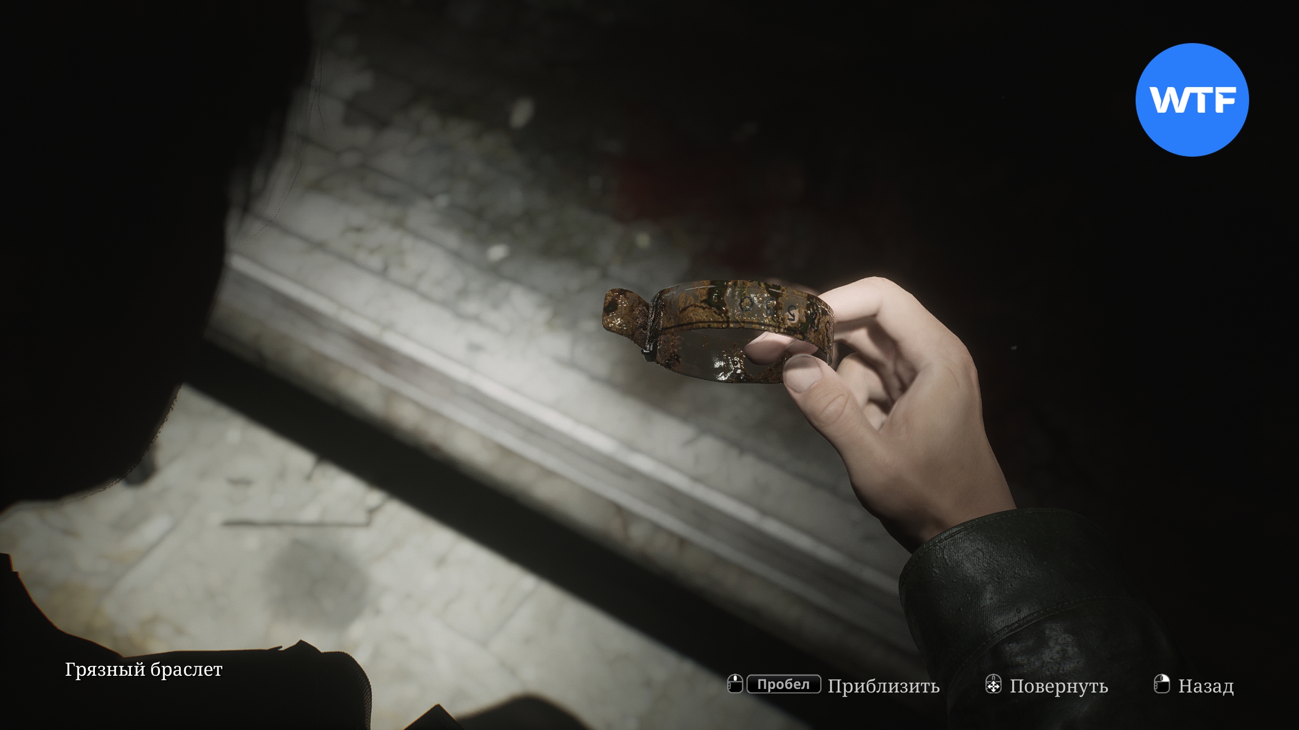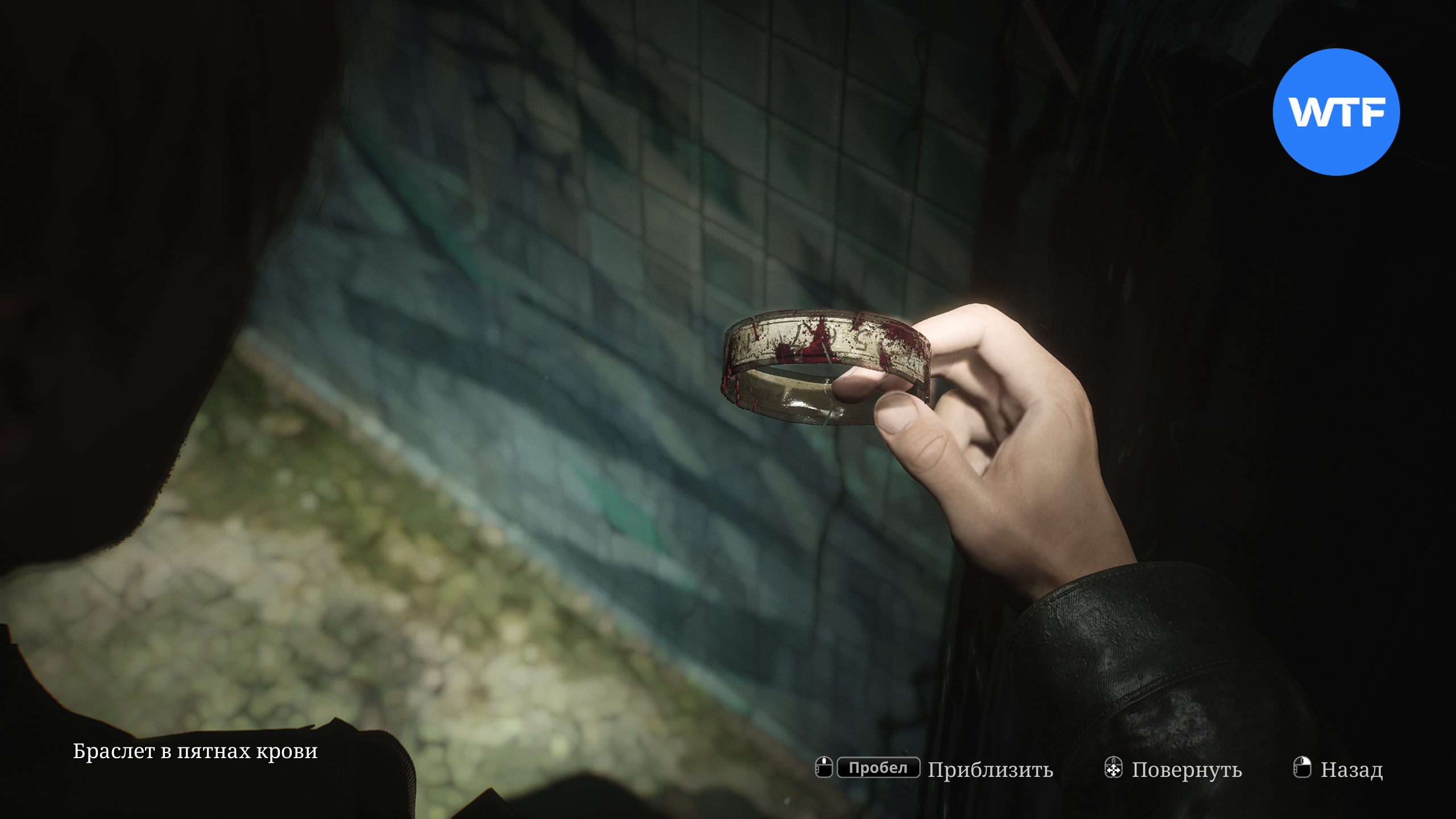 Спуститесь на дно бассейна и сломайте стену с черными потеками, чтобы найти браслет в пятнах крови, спрятанный внутри небольшой ниши.