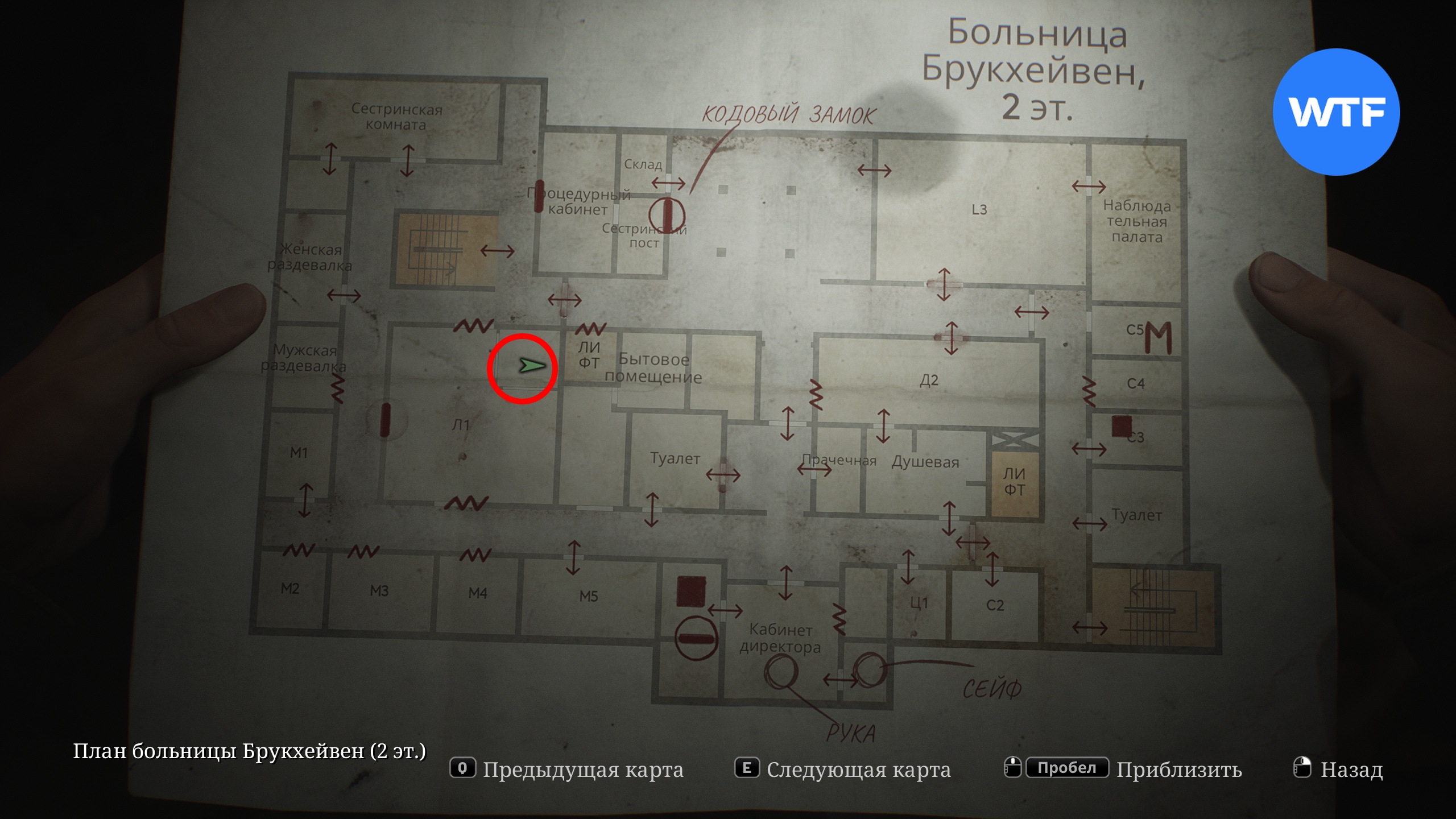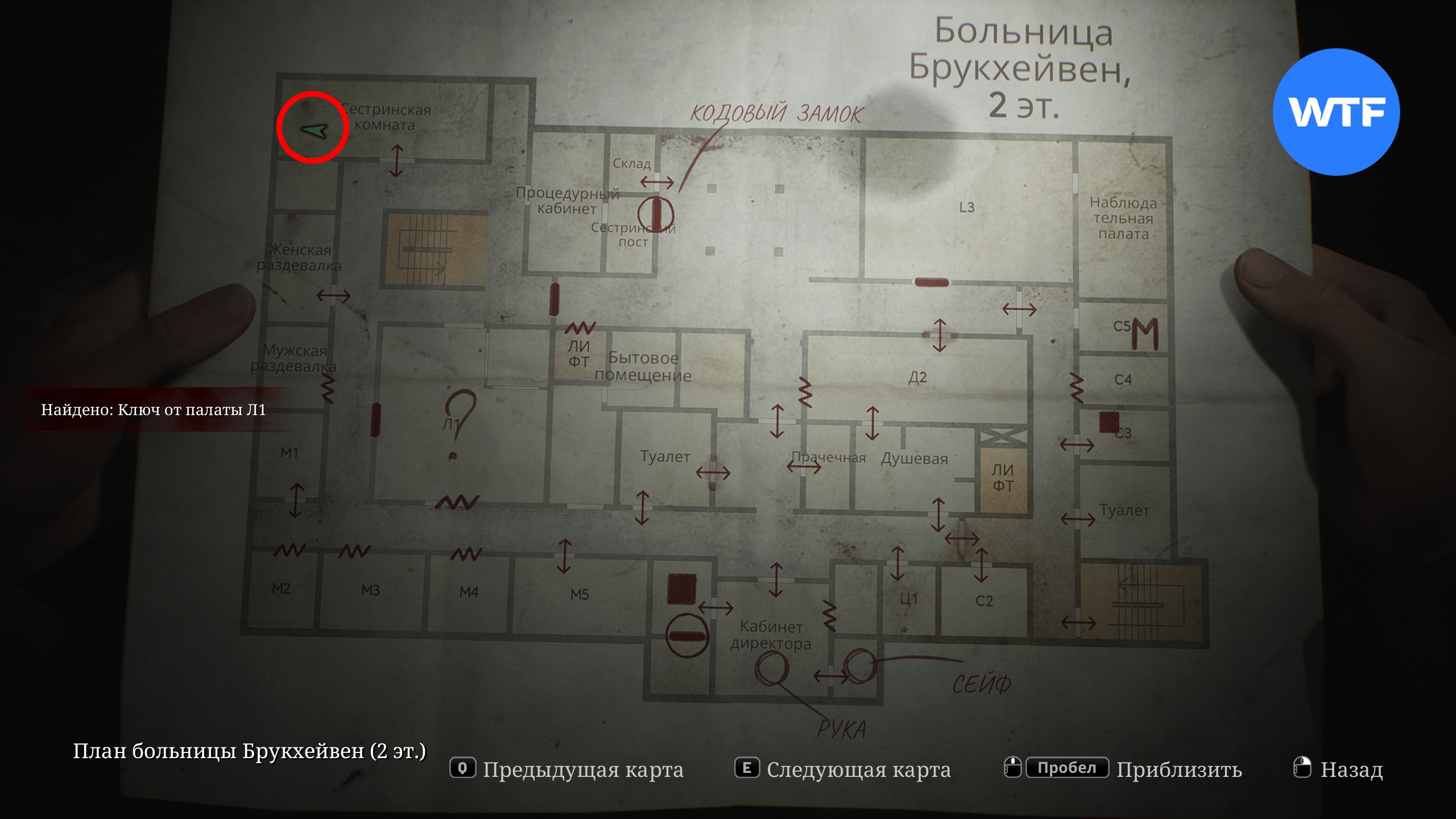 Теперь отправляйтесь в сестринскую комнату в северо-западном углу второго этажа и заберите ключ от палаты Л1 со стола.