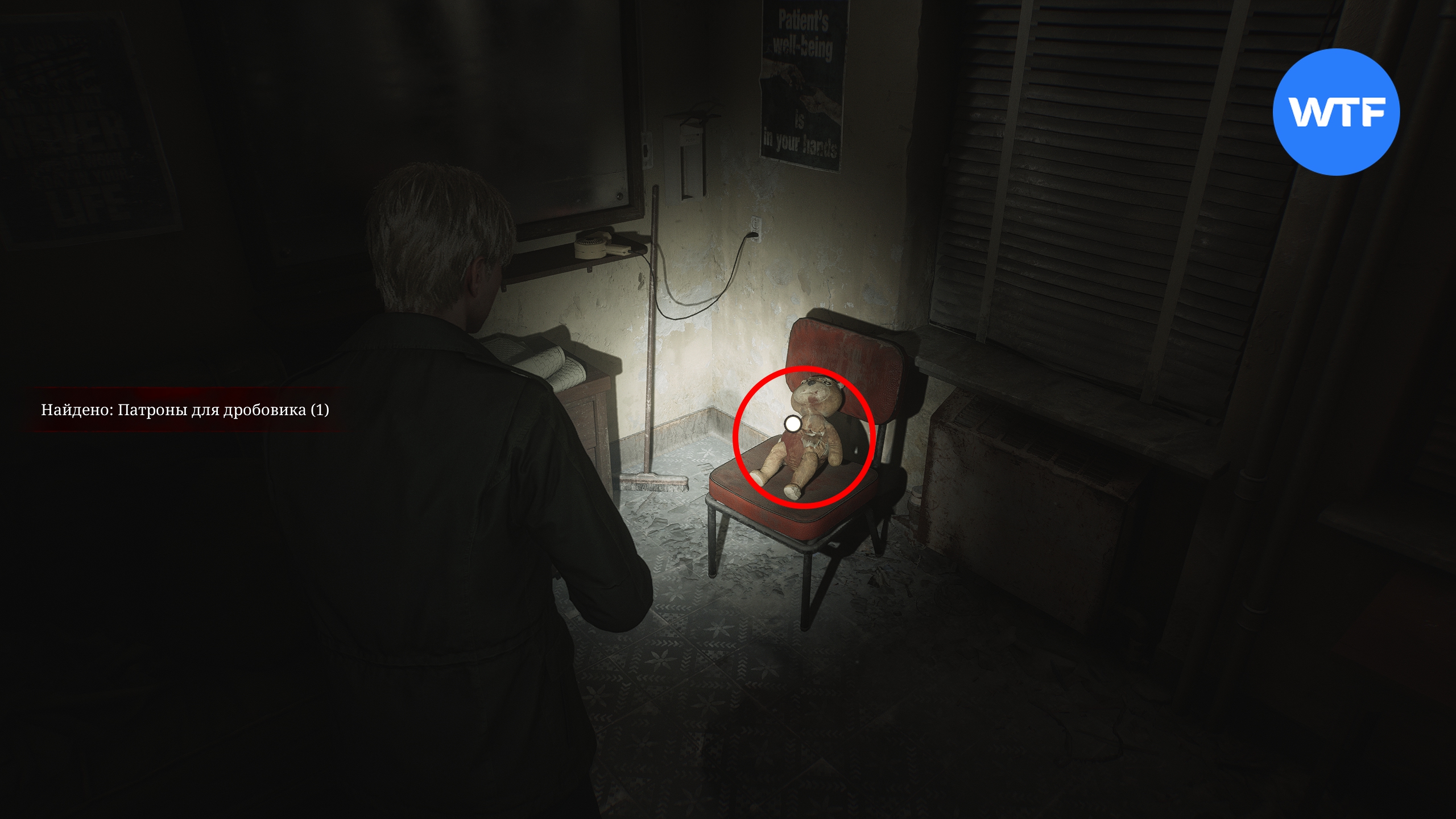 Продолжайте исследовать 2 этаж и загляните в женскую раздевалку в западной части здания. Там вы найдете согнутую иглу из мишки (пригодится позже) и дробовик. Это оружие будет очень кстати, так как вскоре на вас начнут активно нападать местные медсестры.