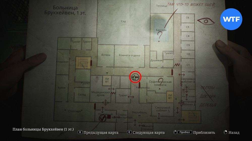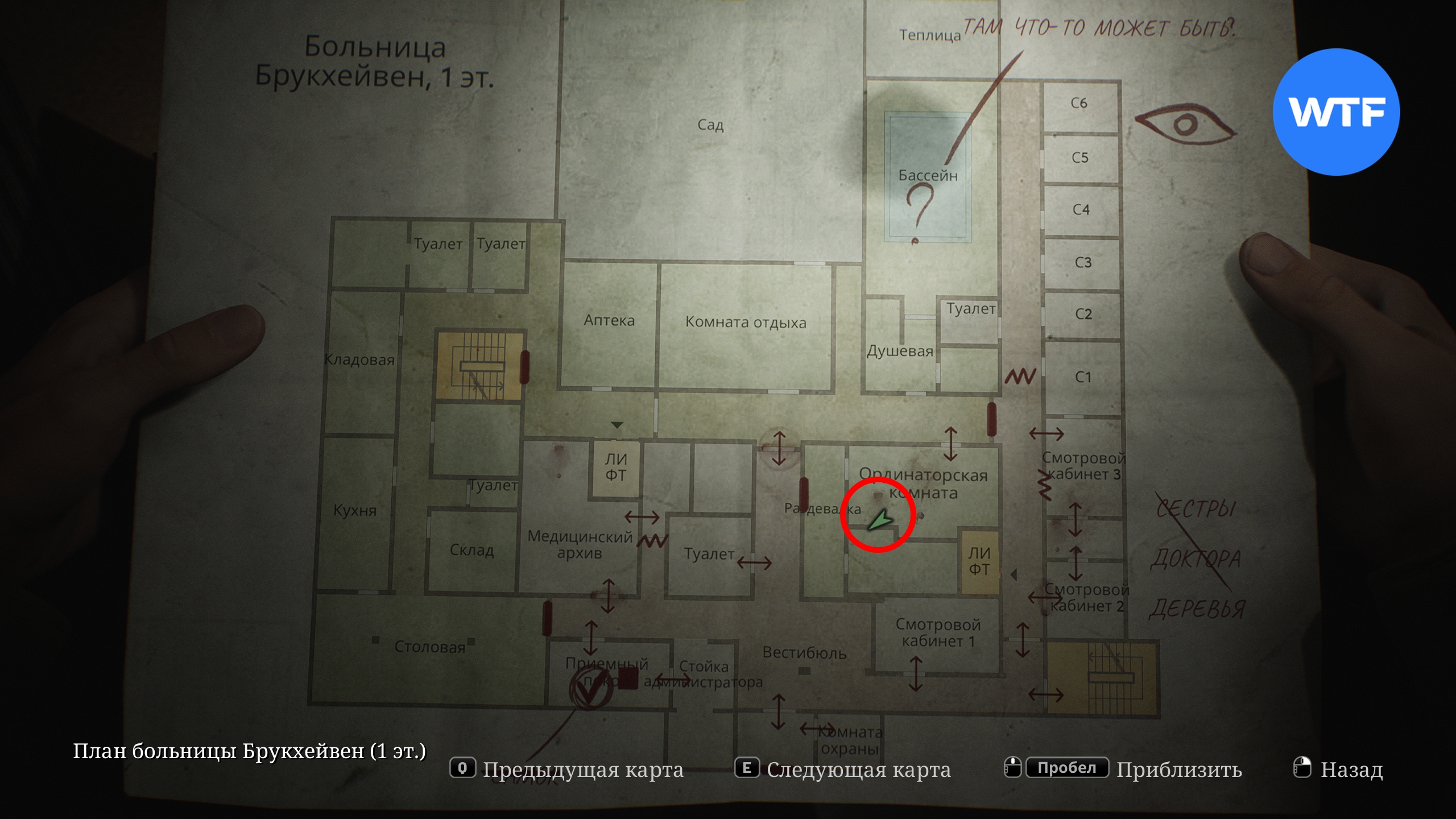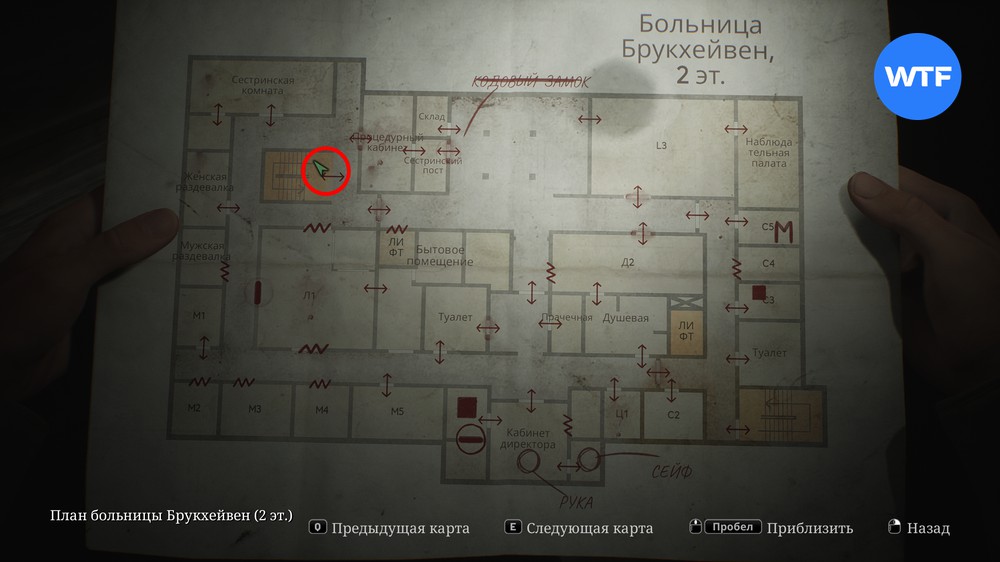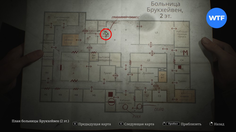 Обратите внимание, что в зависимости от уровня сложности головоломок изображение на подсказке и сам код будут отличаться. Чтобы открыть кодовый замок на сестринском посту в больнице Брукхейвен, вы должны ввести следущую комбинацию: