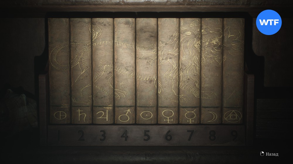 Чтобы решить загадку с книгами, нужно переставить их таким образом, чтобы получилось цельное изображение льва. Обратите внимание, что на деревянной подставке написаны обычные цифры — они помогут вам соотнести символы с кодом.