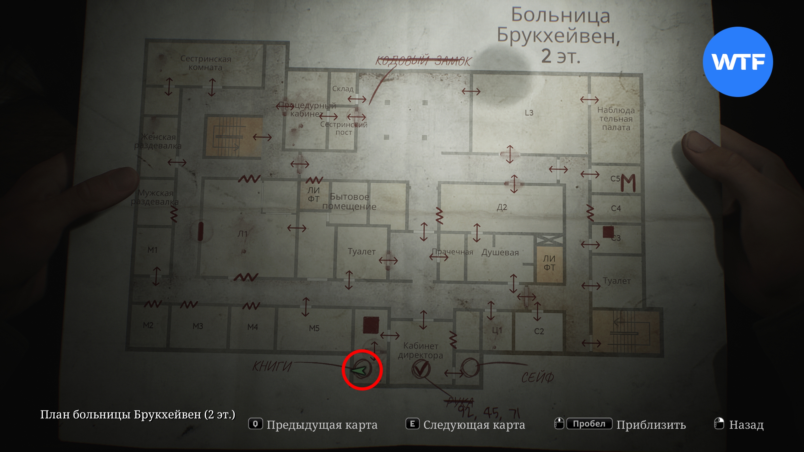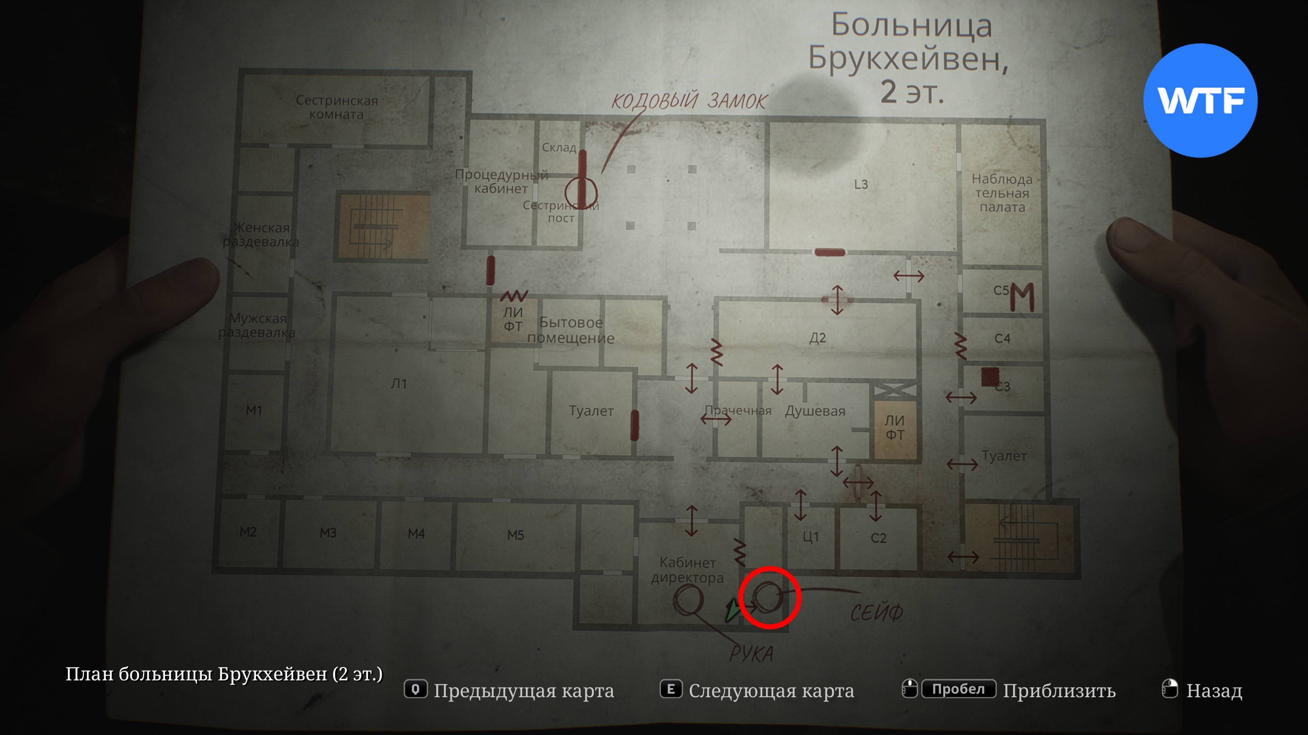 Чтобы найти код от сейфа директора, придется как следует побегать и для начала решить загадку с рукой. Это основная головоломка в этой области, поэтому мы вынесли её прохождение в отдельный гайд:
