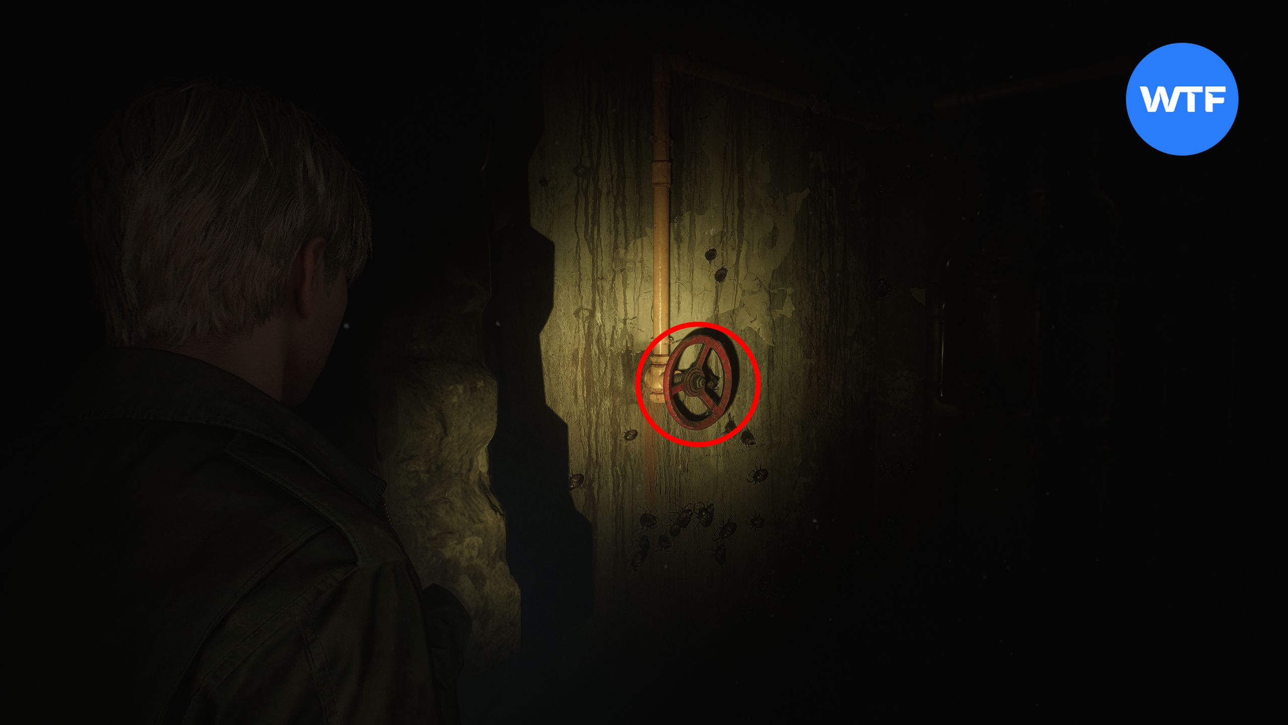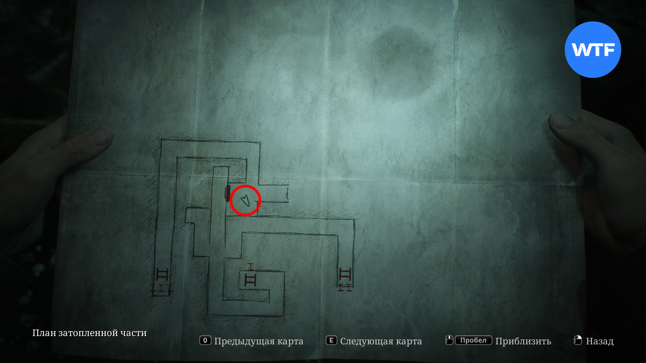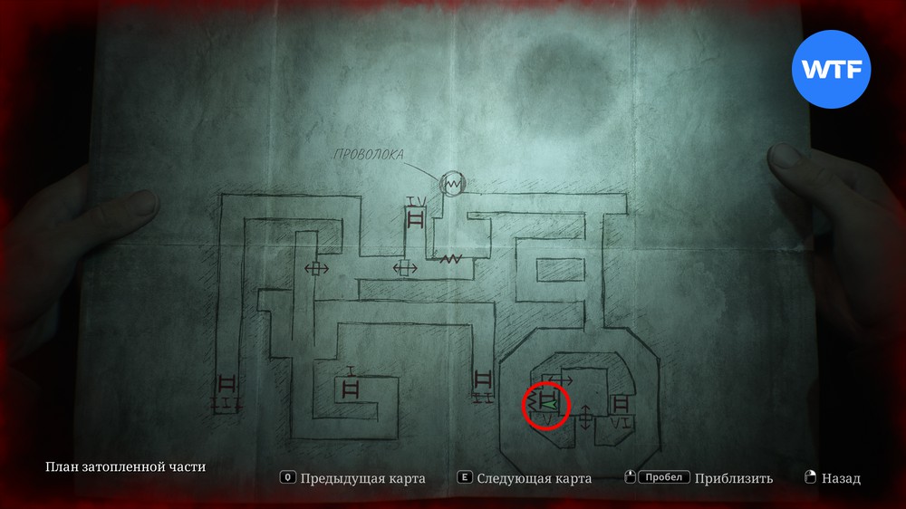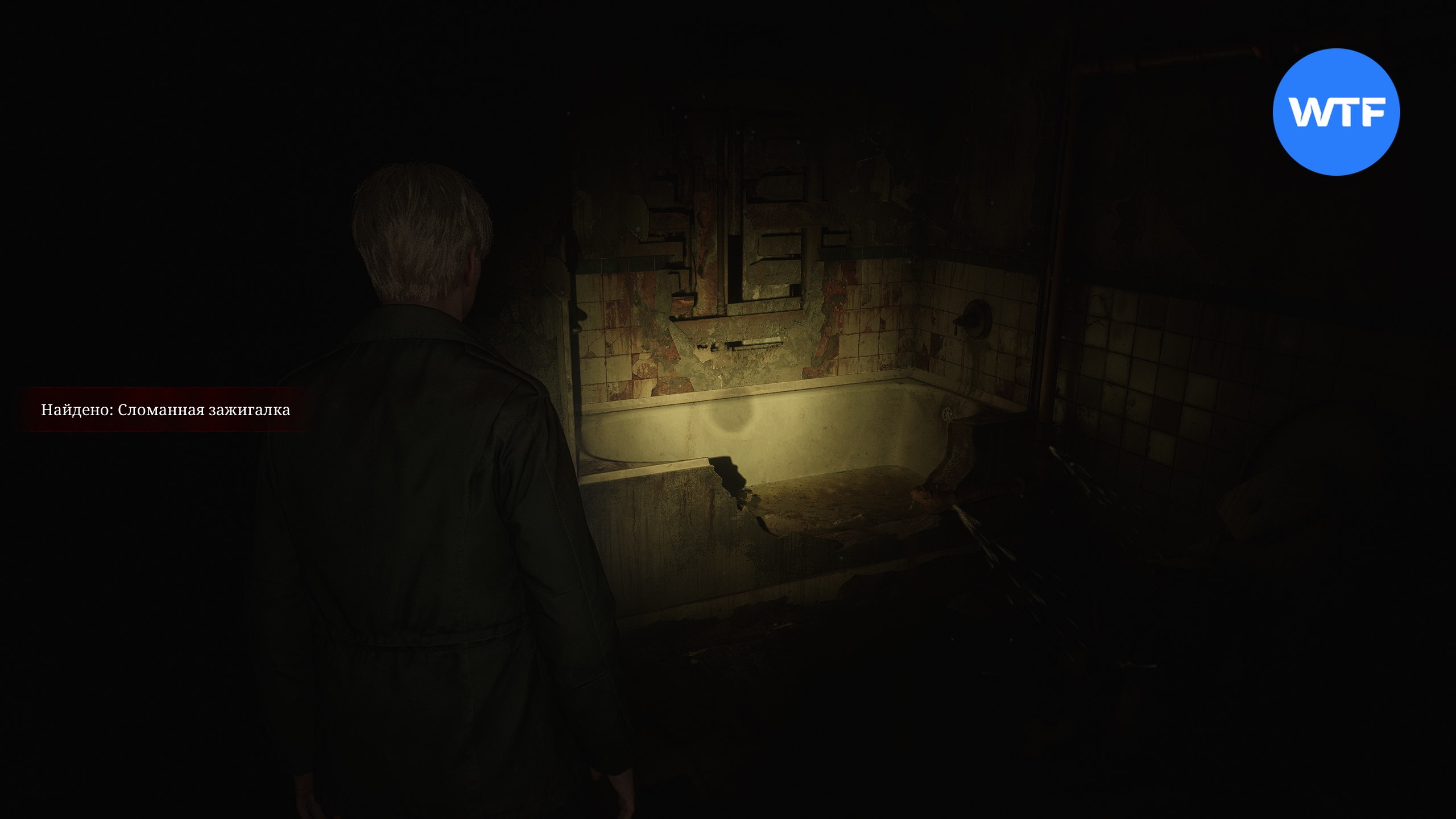 Пройдя через эту дверь, вы окажетесь в ванной комнате. Из неё следуйте направо по узкому коридору до самого конца и поверните красный вентиль, чтобы слить воду. Затем вернитесь к ванной и заберите из неё сломанную зажигалку.