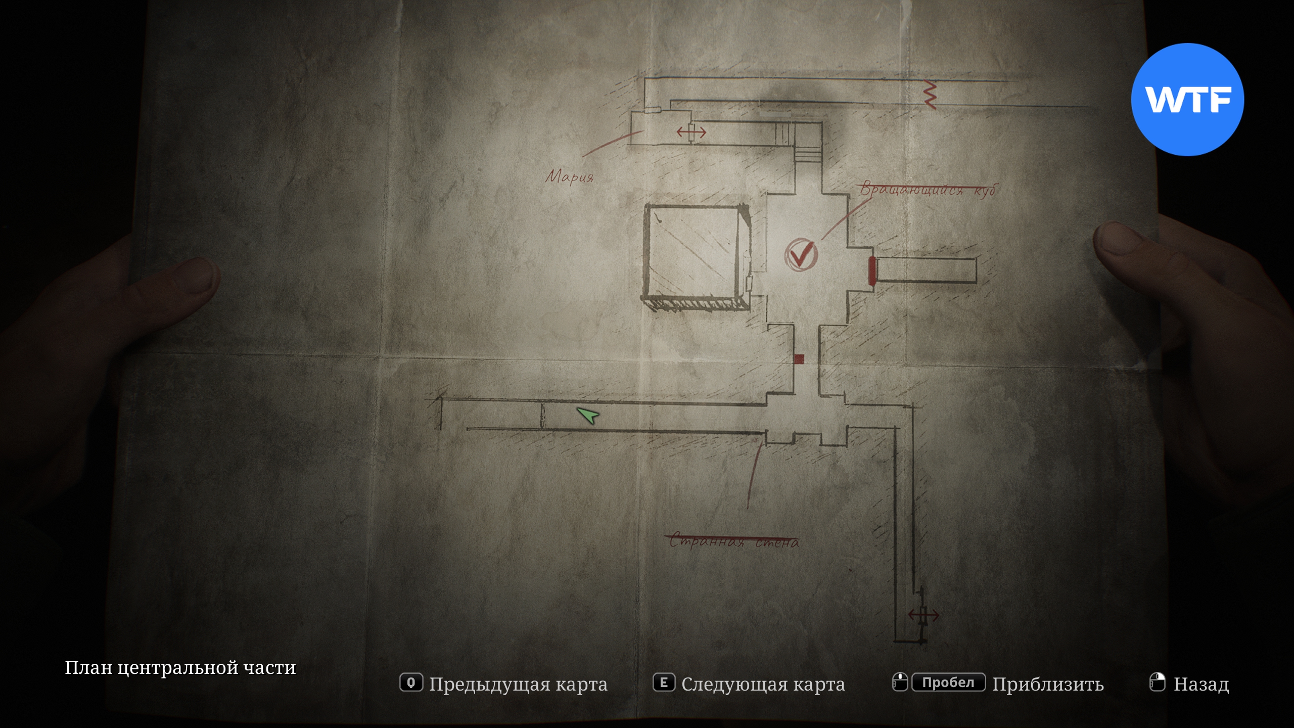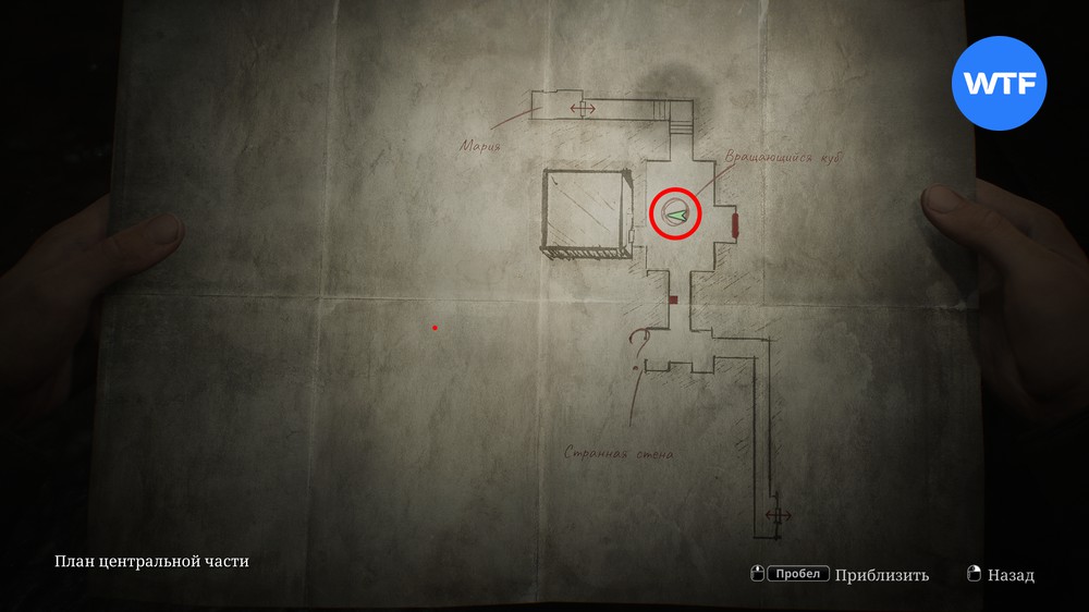 Вернувшись в центральную часть лабиринта после разговора с Марией, вы увидите, что там появился вращающийся куб. Поворачивая его, вы управляете зданием напротив, и можете исследовать различные его части.