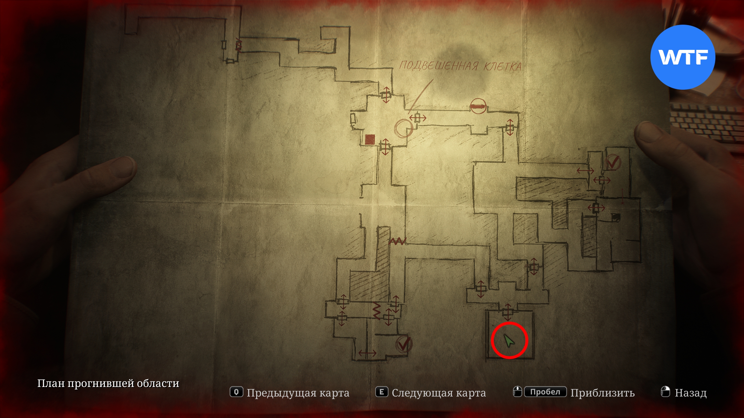 Затем бегите в комнату, отмеченную на скриншоте ниже, ориентируясь на нашу карту. Там вы должны забрать железный ключ из ящика стола. Он открывает дверь к востоку от подвешенной клетки.