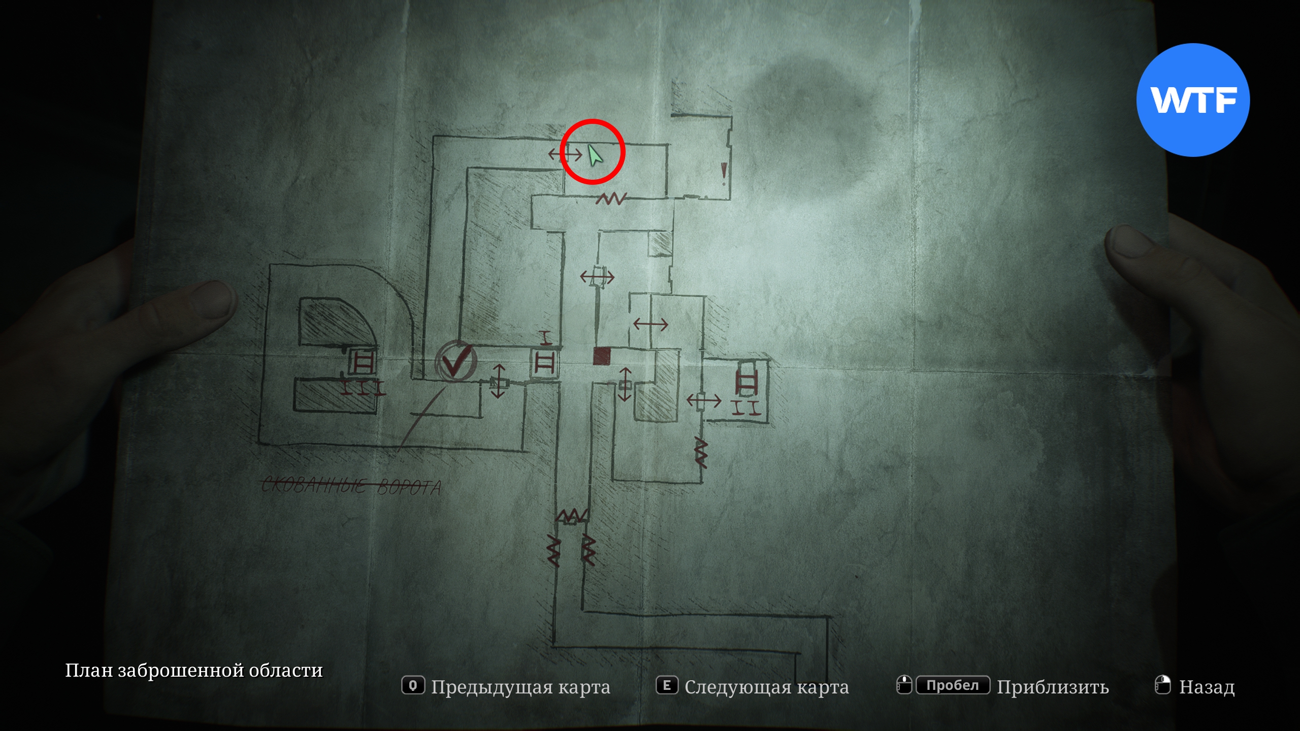 Для начала исследуйте область к востоку от неё. Ориентируйтесь на карту ниже, чтобы добраться до комнаты в юго-восточном углу. Там вам нужно подкатить тележку, чтобы пролезть в дыру под потолком.